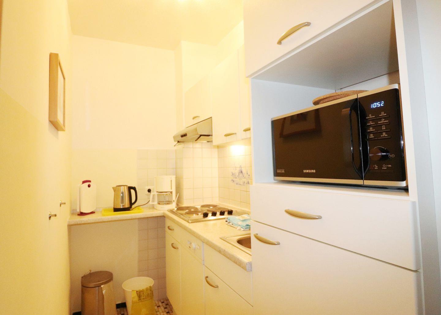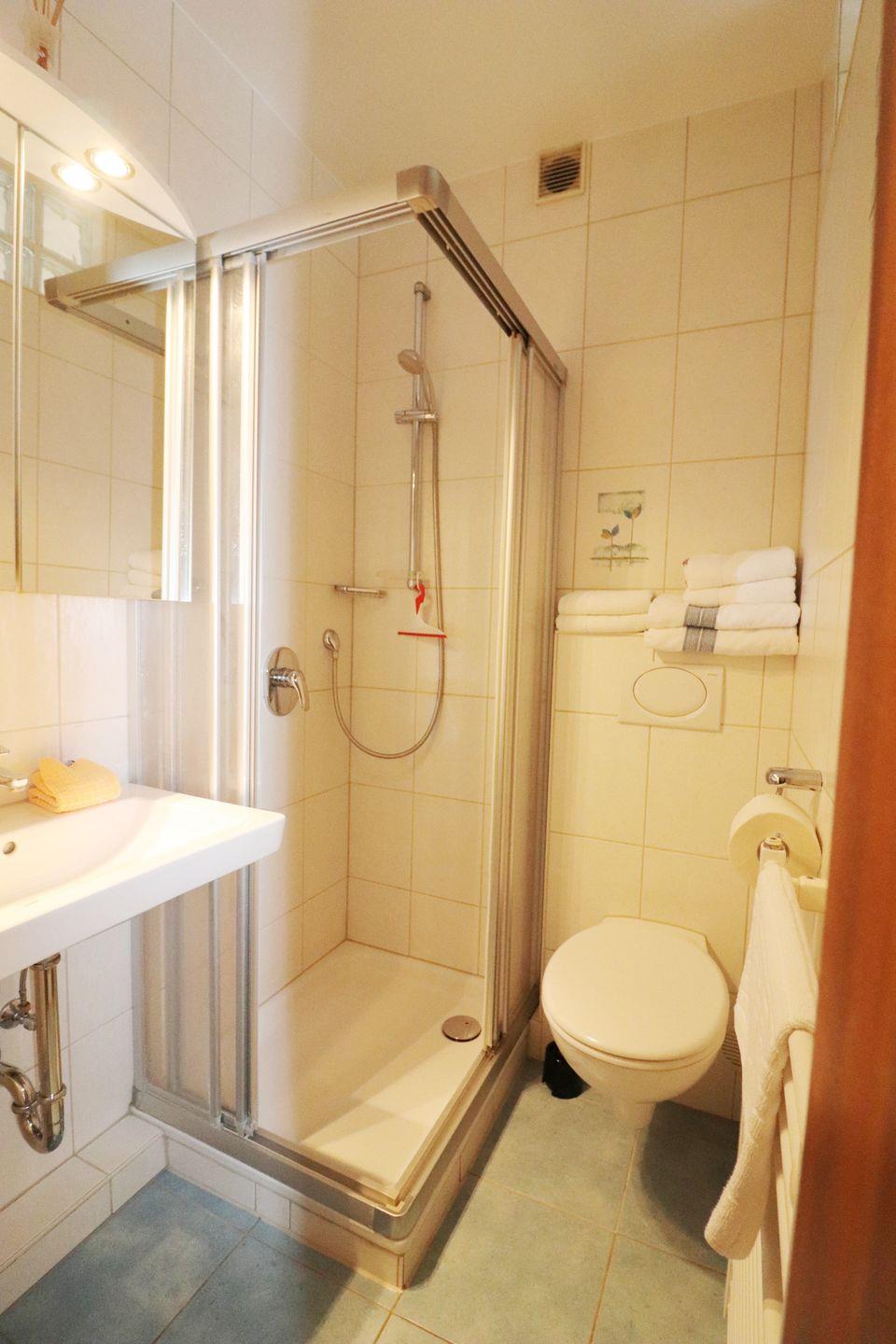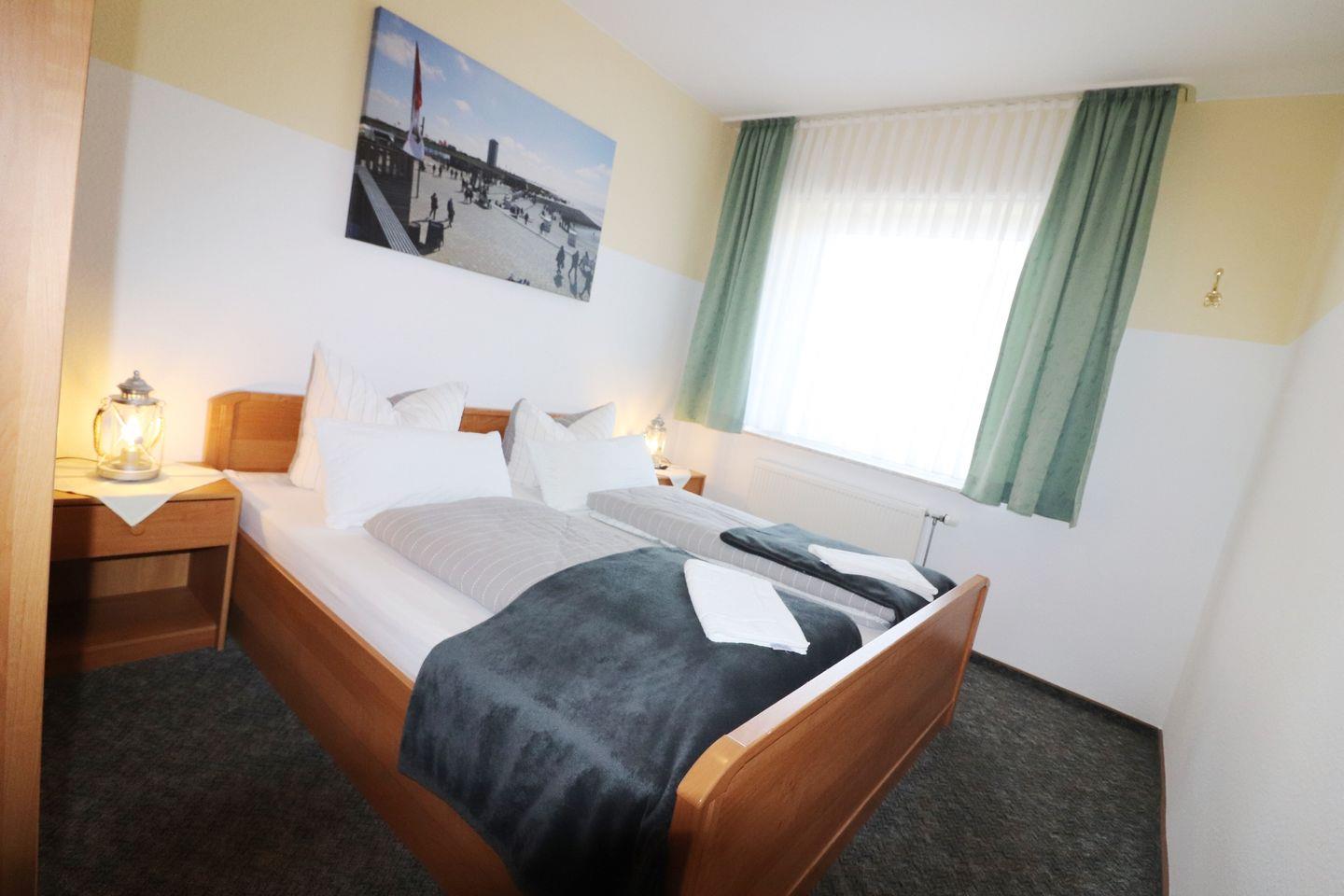 2-Raum-Wohnung für bis zu 4 Pers., 1 Schlafzimmer + 1 Schlafsofa im Wohnzimmer (max. 2 Erwachsene und 2 Kinder), 1. Stock mit Balkon, Wlan, 1 Duschbad