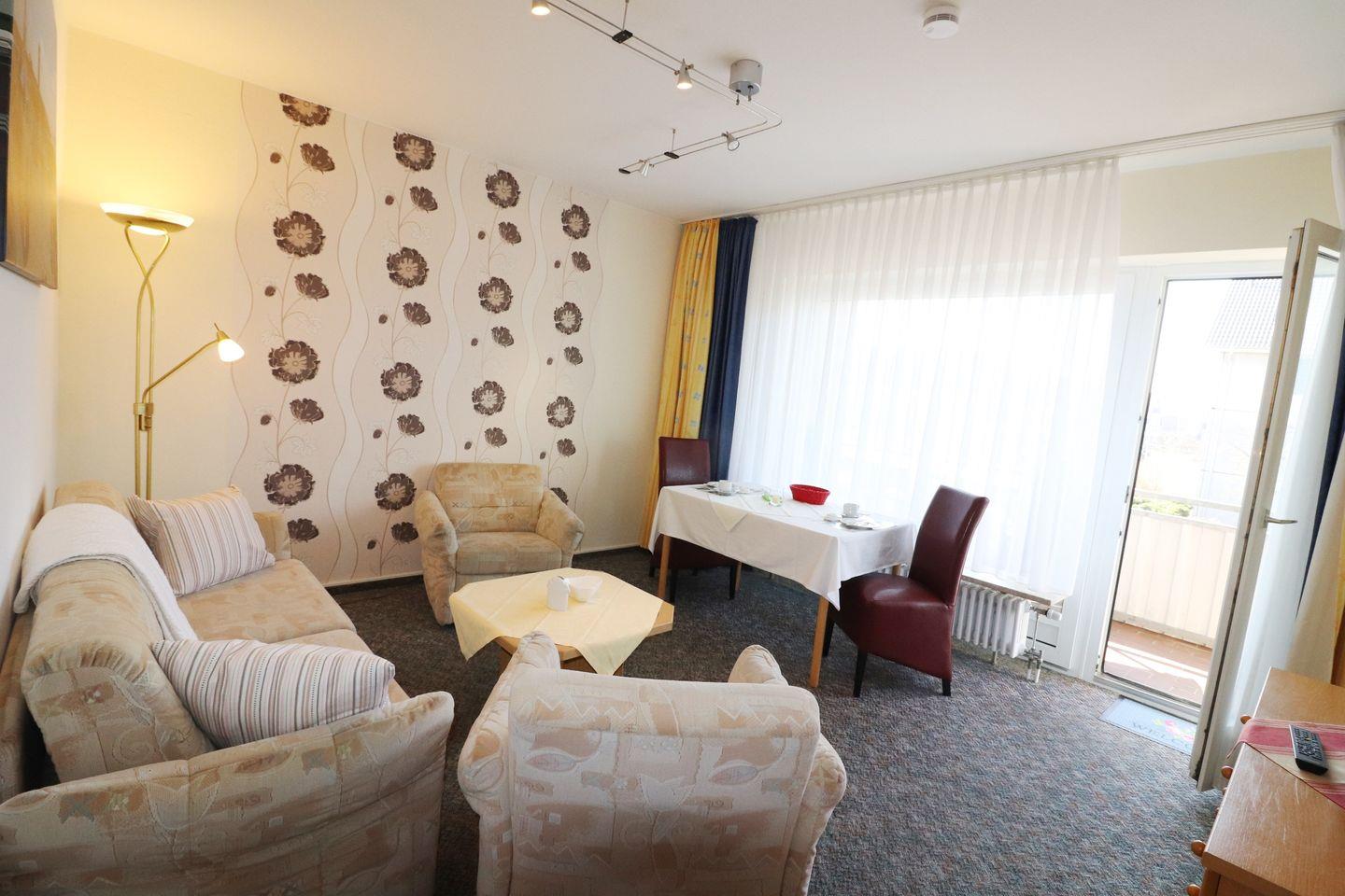 2-Raum-Wohnung für bis zu 4 Pers., 1 Schlafzimmer + 1 Schlafsofa (max. 2 Erwachsene und 2 Kinder), 1. Stock mit Balkon, Wlan, 1 Duschbad