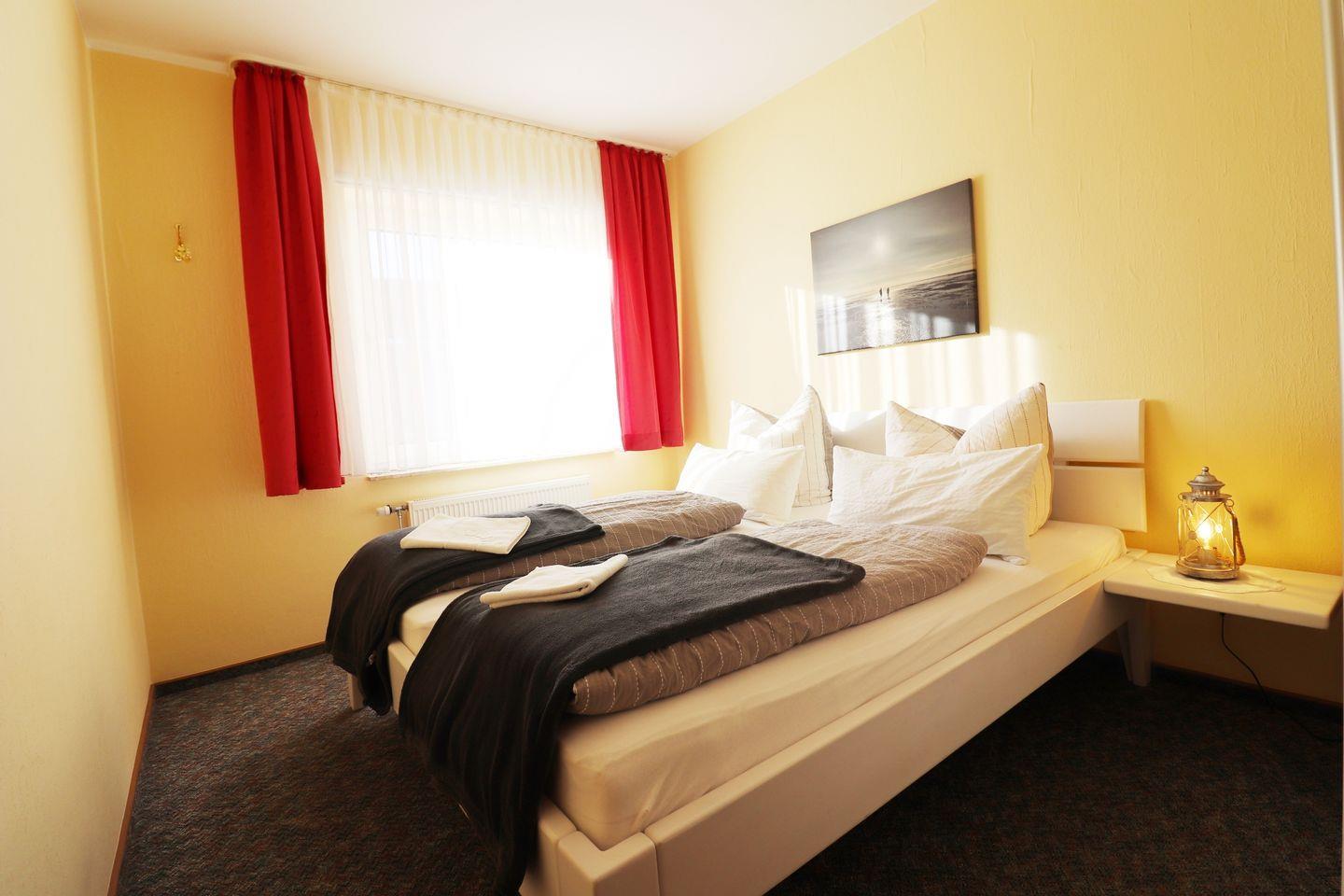 Die 2-Raum-Wohnung hat 40 m² und 1 Schlafzimmer (1 x Doppelbett). Hervorragend geeignet für Singles und Paare. Dieser Wohnungstyp ist mit Balkon ausgestattet und befindet sich im 1. Stock. Eine Belegung mit bis zu 4 Personen (ma. 2 Erwachsene und 2 Kinder) ist optional möglich. Die Wohnung hat eine separate Küche und ein Duschbad. Die Küche hat eine Mikrowelle, Wasserkocher, Kaffeemaschine, Toaster, sowie Geschirr für den täglichen Bedarf sind ebenfalls vorhanden. Haustiere sind nicht erlaubt. Alle Wohnungen im Haus "Dithmarschen" verfügen über WLAN in der Wohnung.