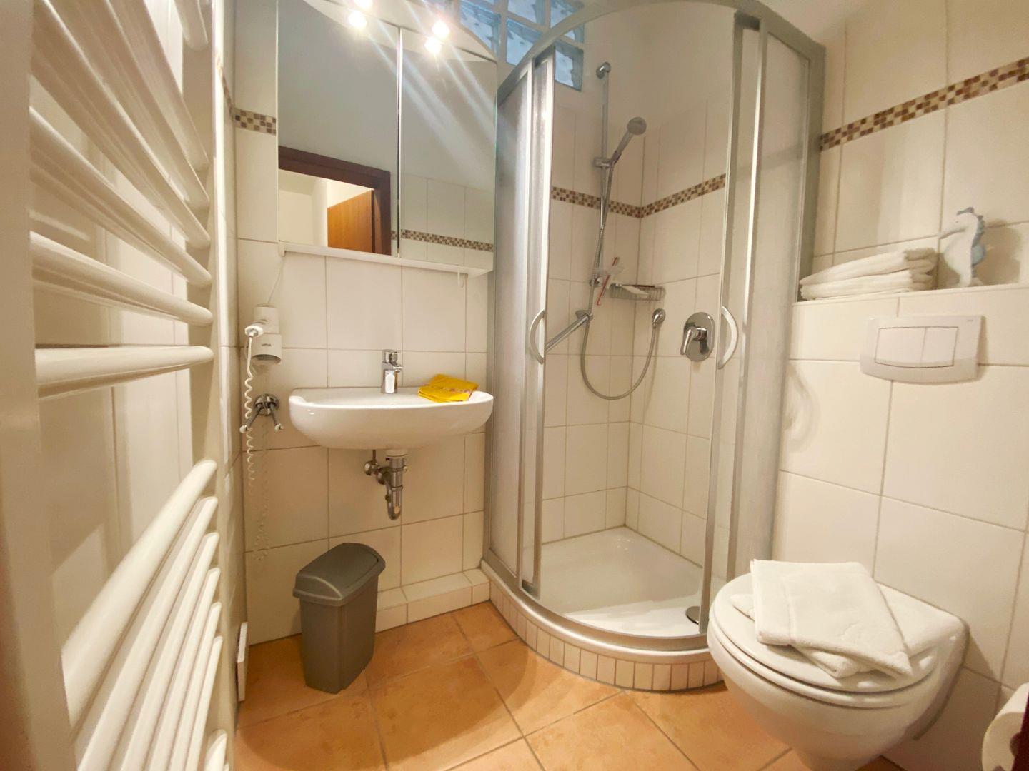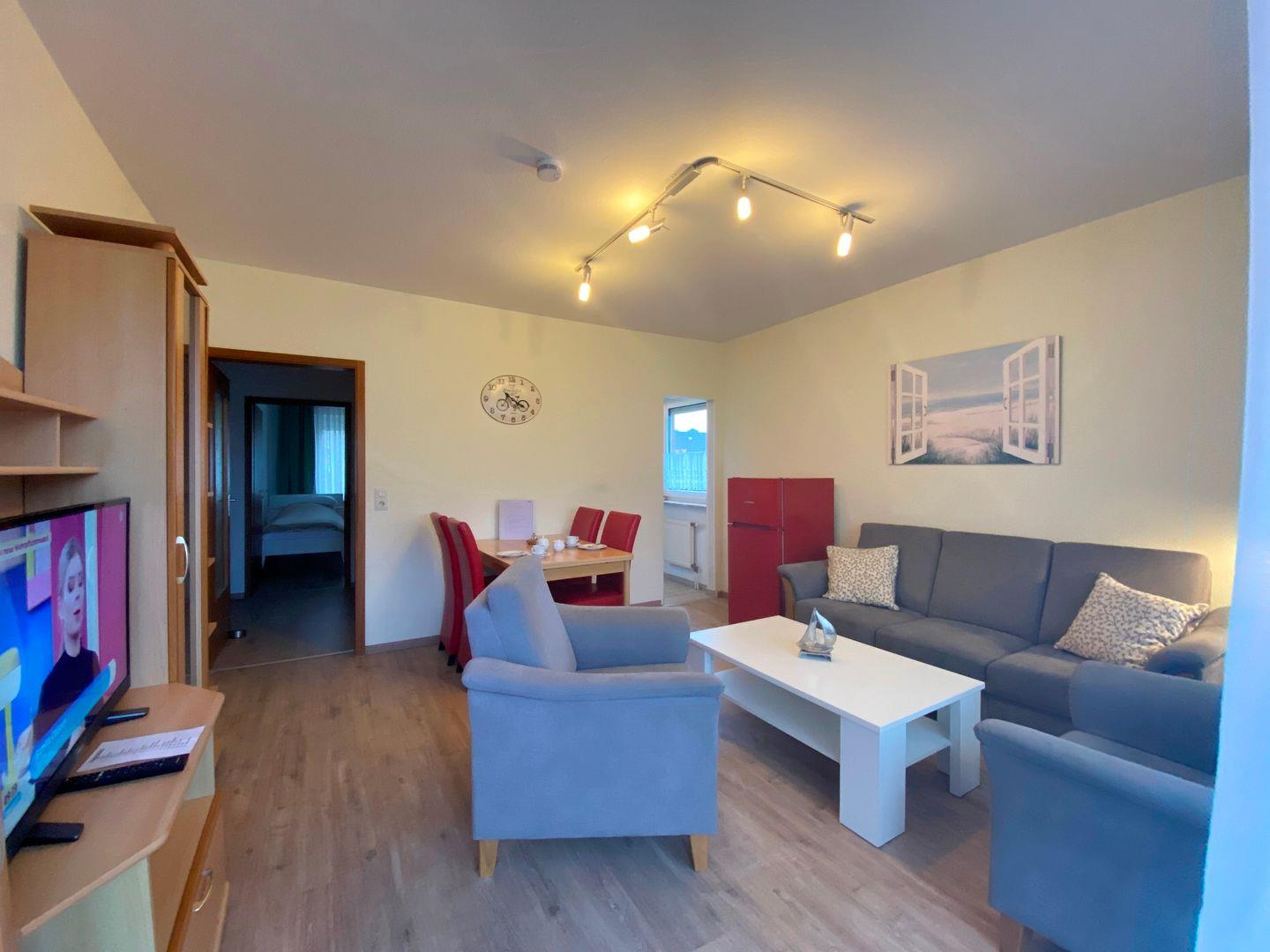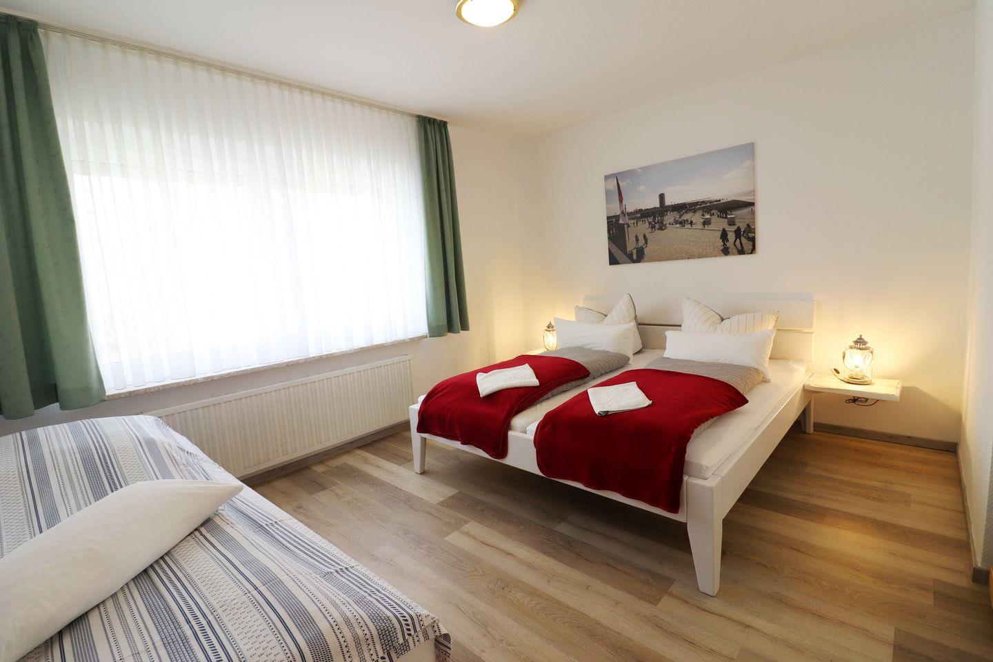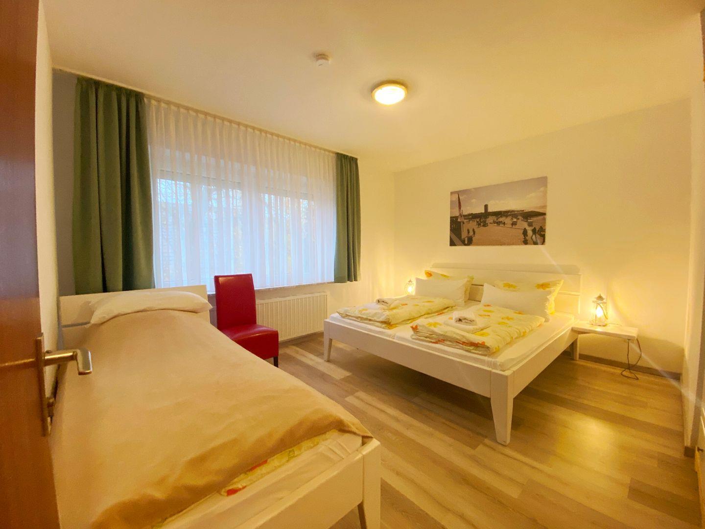 3-Raum-Wohnung für bis zu 5 Pers., 2 Schlafzimmer mit je einem Doppelbett + Zusatzbett in einem der Schlafzimmer, 1. Stock mit Balkon, Wlan, 2 Bäder, Haustiere nicht erlaubt