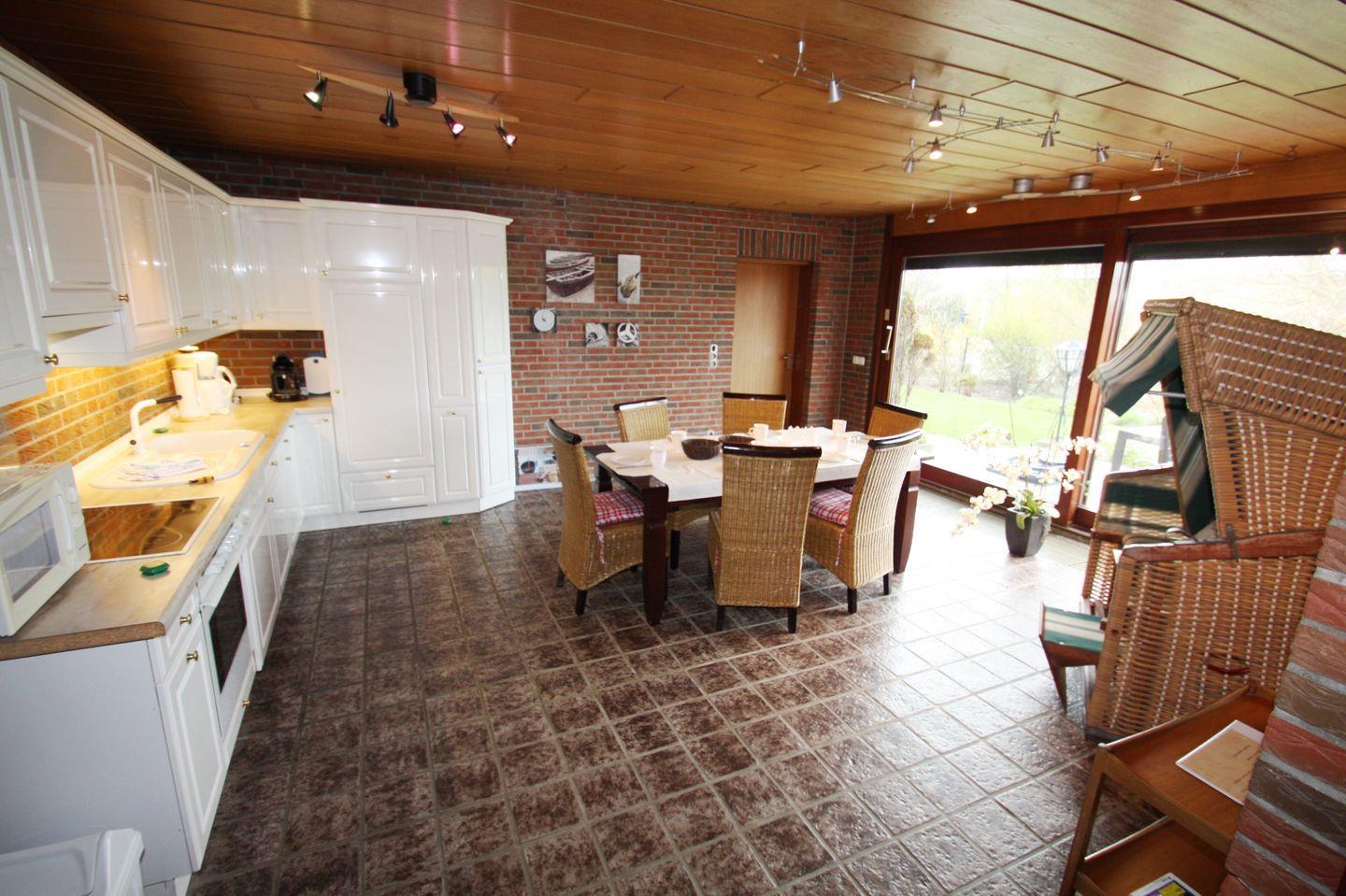 Diese großzügige 4-Raum-Ferienwohnung im Hochparterre bietet viel Platz für Familien oder Paare und besticht durch ihre große gemütliche Küche, mit direktem Zugang zur Terrasse,