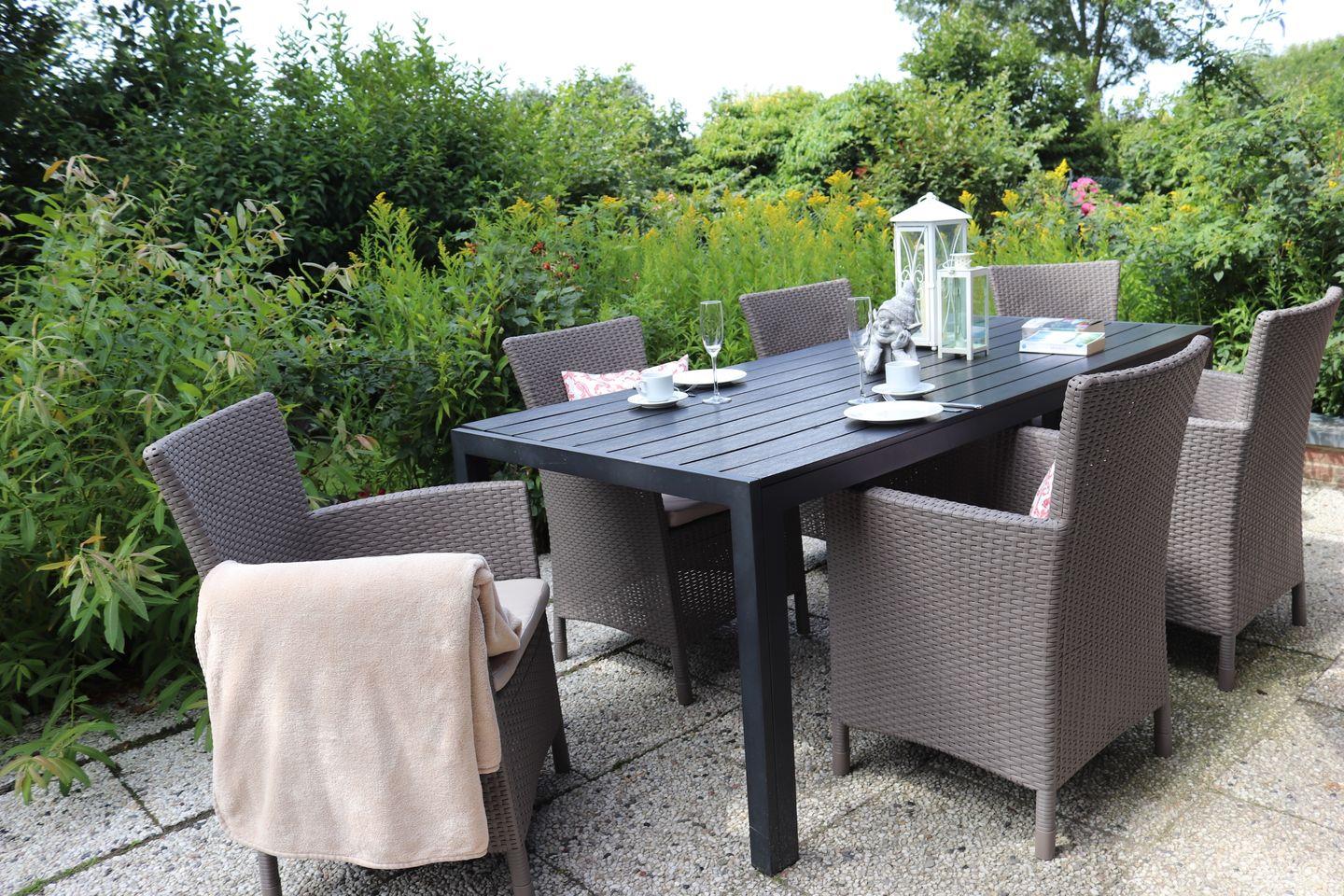 Die großzügige Terrasse lädt zum Entspannen ein, sei es beim Frühstück am Morgen an der frischen Luft oder einem gemütlichen Abendessen im Freien.