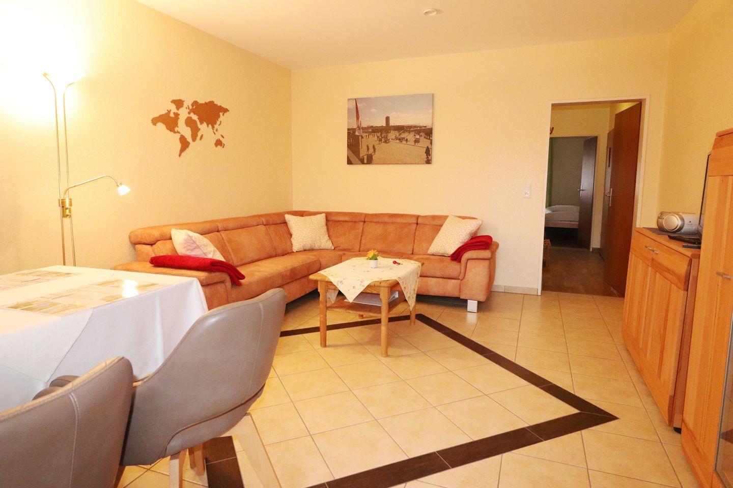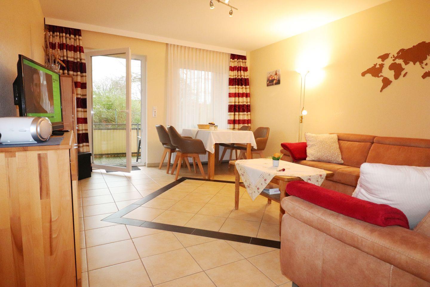 Das 2-Raum Appartement befindet sich im Parterre auf ca. 47 m², hat 1 Schlafzimmer (1 x Doppelbett + 1 x Einzelbett extra), ein Wohnzimmer, eine Terrasse zur Seeseite(Süden) mit Blick in den Kurpark, separate Küche und Duschbad. Die Wohnung ist gemütlich eingerichtet. Die Einbauküche verfügt über einen Geschirrspüler, Backofen, Wasserkocher, Kaffeemaschine, Toaster, sowie Geschirr für den täglichen Bedarf sind ebenfalls vorhanden. Haustiere nach Absprache erlaubt.