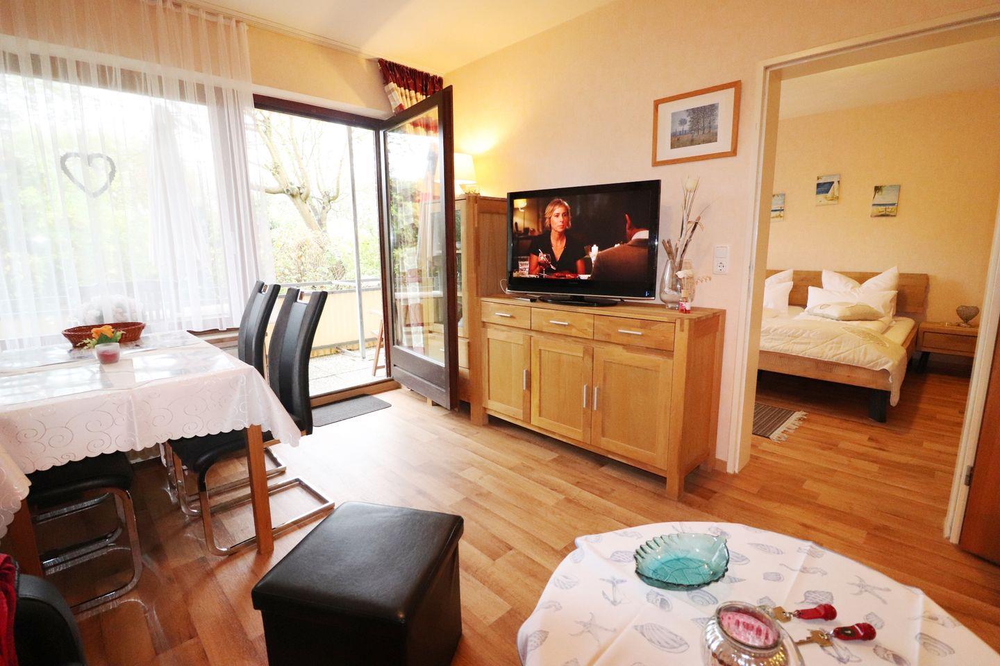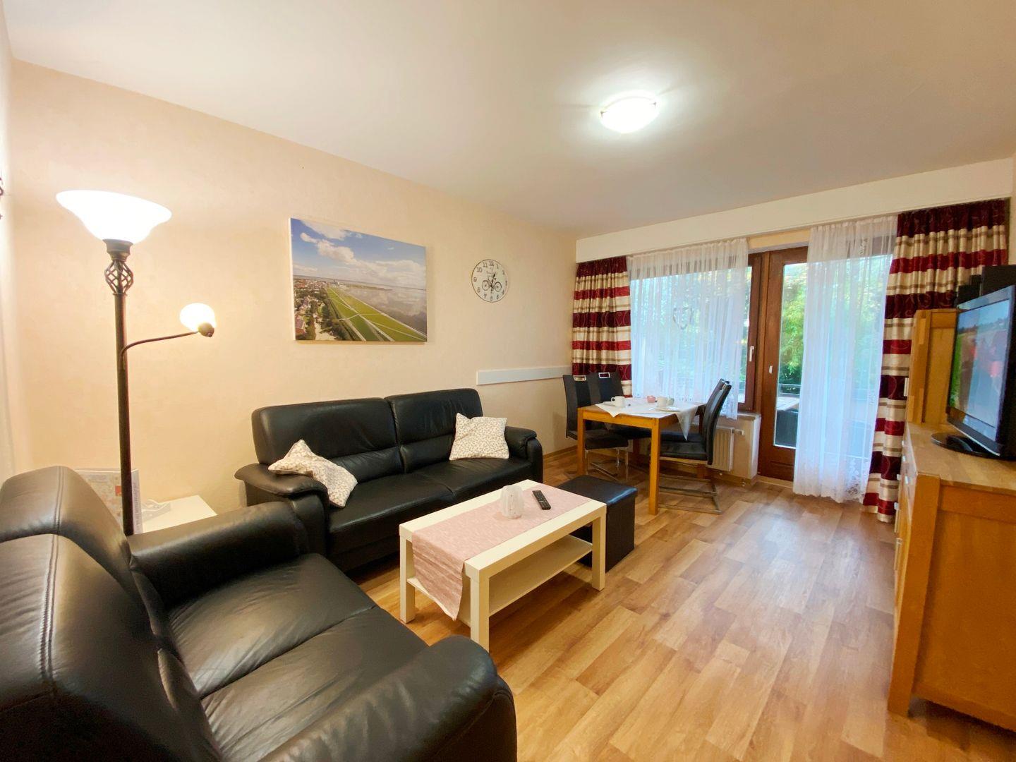 Unser Haus ist direkt in erster Reihe hinterm Deich am Kurpark gelegen. Das 3-Raum Appartement im Parterre auf ca. 62 m² hat 2 Schlafzimmer(2 x Doppelbett + 1 x Einzelbett), ein Wohnzimmer mit Doppelterrasse zur Seeseite (Süden) mit Blick in den Kurpark, separate Küche und Duschbad. Die Wohnung ist gemütlich eingerichtet. Die Einbauküche verfügt über einen Backofen, Wasserkocher, Kaffeemaschine, Toaster, Geschirrspüler, sowie Geschirr für den täglichen Bedarf sind ebenfalls vorhanden. Haustiere nach Absprache erlaubt.