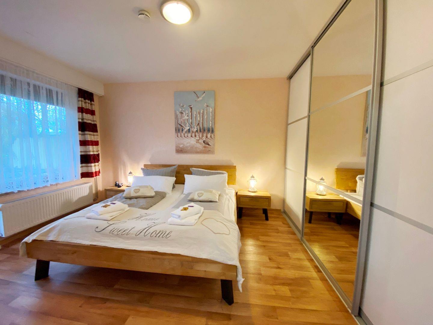 3-Raum-Wohnung für bis zu 5 Pers., 2 Schlafzimmer (2x Doppelbett + 1Einzelbett extra in einem der Schlafzimmer), Parterre mit Terrasse, Wlan, 1 Duschbad