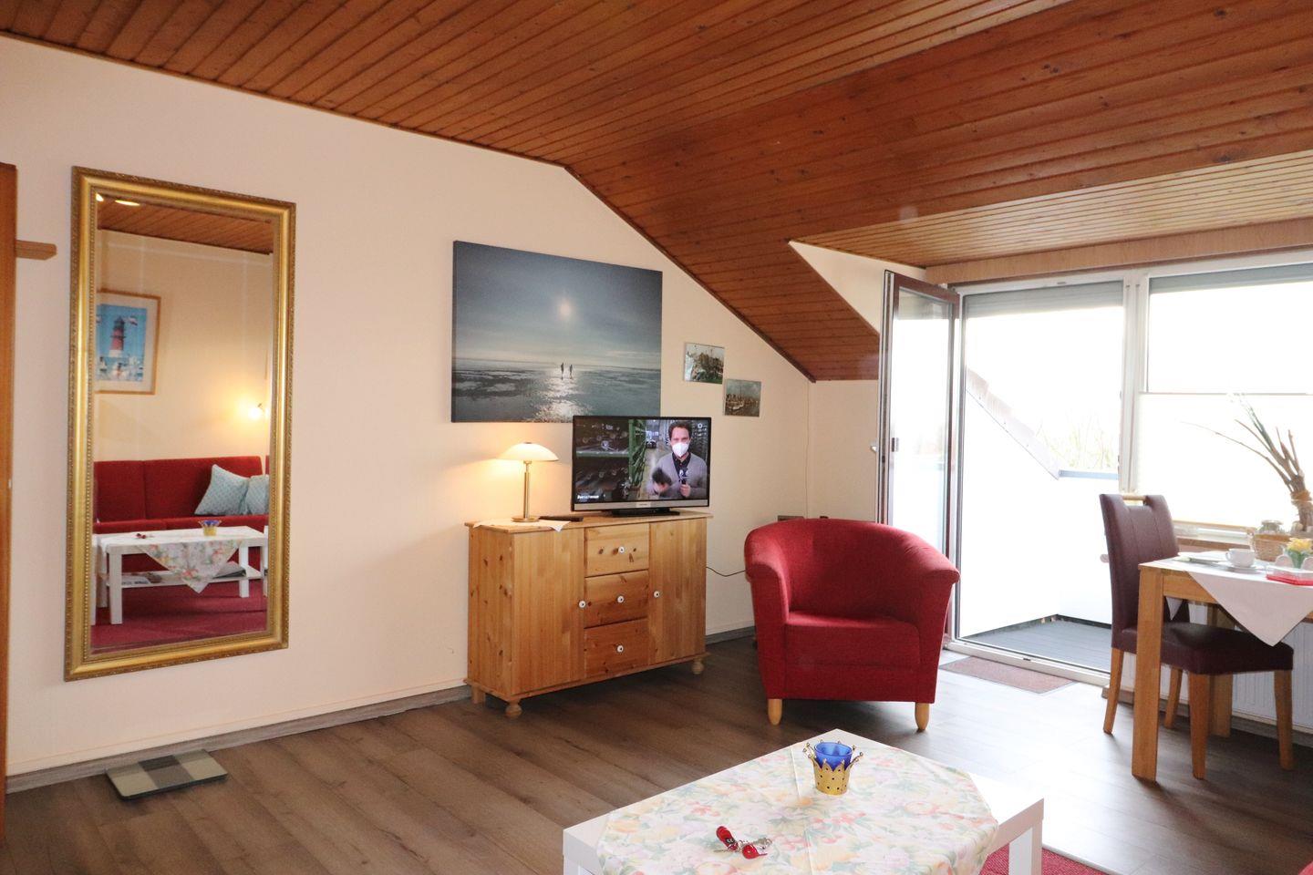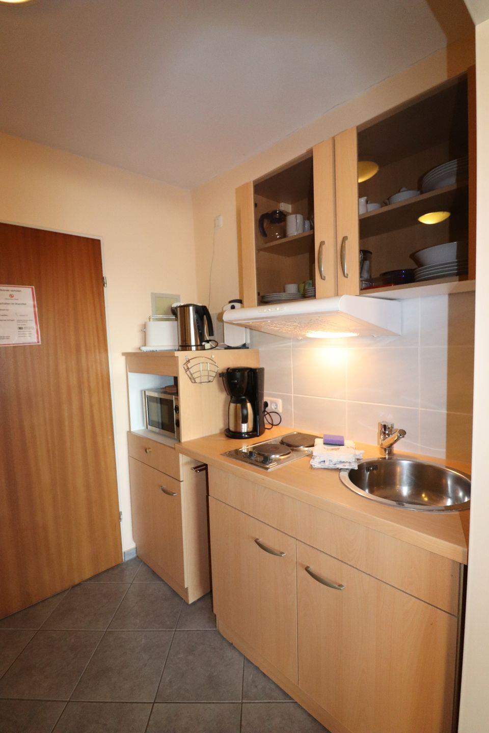 Das 1-Raum Appartement auf ca. 32 m² ist ein kombi. Wohn-/ Ess-/ und Schlafraum mit Balkon zur Seeseite (Süden) mit Blick in den Kurpark. Die Wohnung liegt im 2. Stock, ist gemütlich eingerichtet und hat einen eingeschränkten Seeblick (Saisonbedingt durch die Bäume) . Die kleine Küche verfügt über eine Mikrowelle, Wasserkocher, Kaffeemaschine, Toaster, sowie Geschirr für den täglichen Bedarf sind ebenfalls vorhanden. Duschbad. Haustiere sind nicht erlaubt.