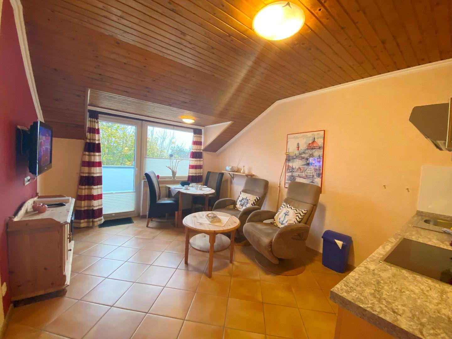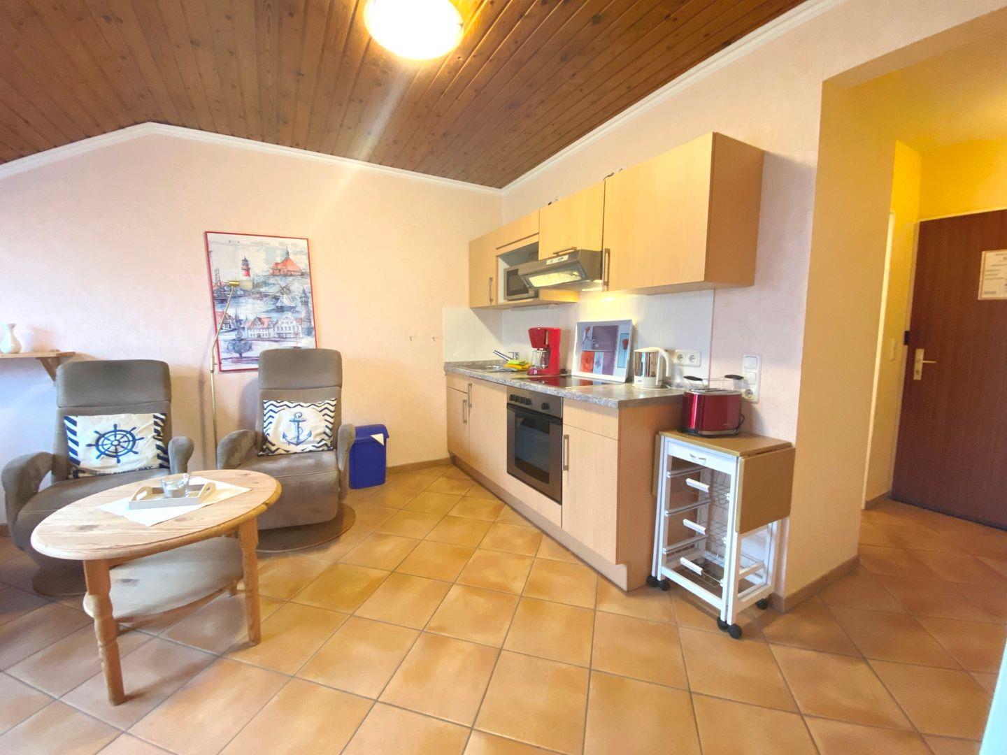 Das 2-Raum Appartement im 2. OG auf ca. 37 m² verfügt über eine Wohnküche mit Balkon zur Seeseite(Süden) mit eingeschränktem Seeblick (Saisonbedingt durch die Bäume) auf das Meer und in den Kurpark, einem Schlafzimmer mit einem gemütlichen Doppelbett und ein Duschbad. Die Wohnung ist gemütlich eingerichtet. Die Einbauküche verfügt über einen Backofen, Mikrowelle, Wasserkocher, Kaffeemaschine, Toaster, sowie Geschirr für den täglichen Bedarf sind ebenfalls vorhanden. Haustiere sind nicht erlaubt.