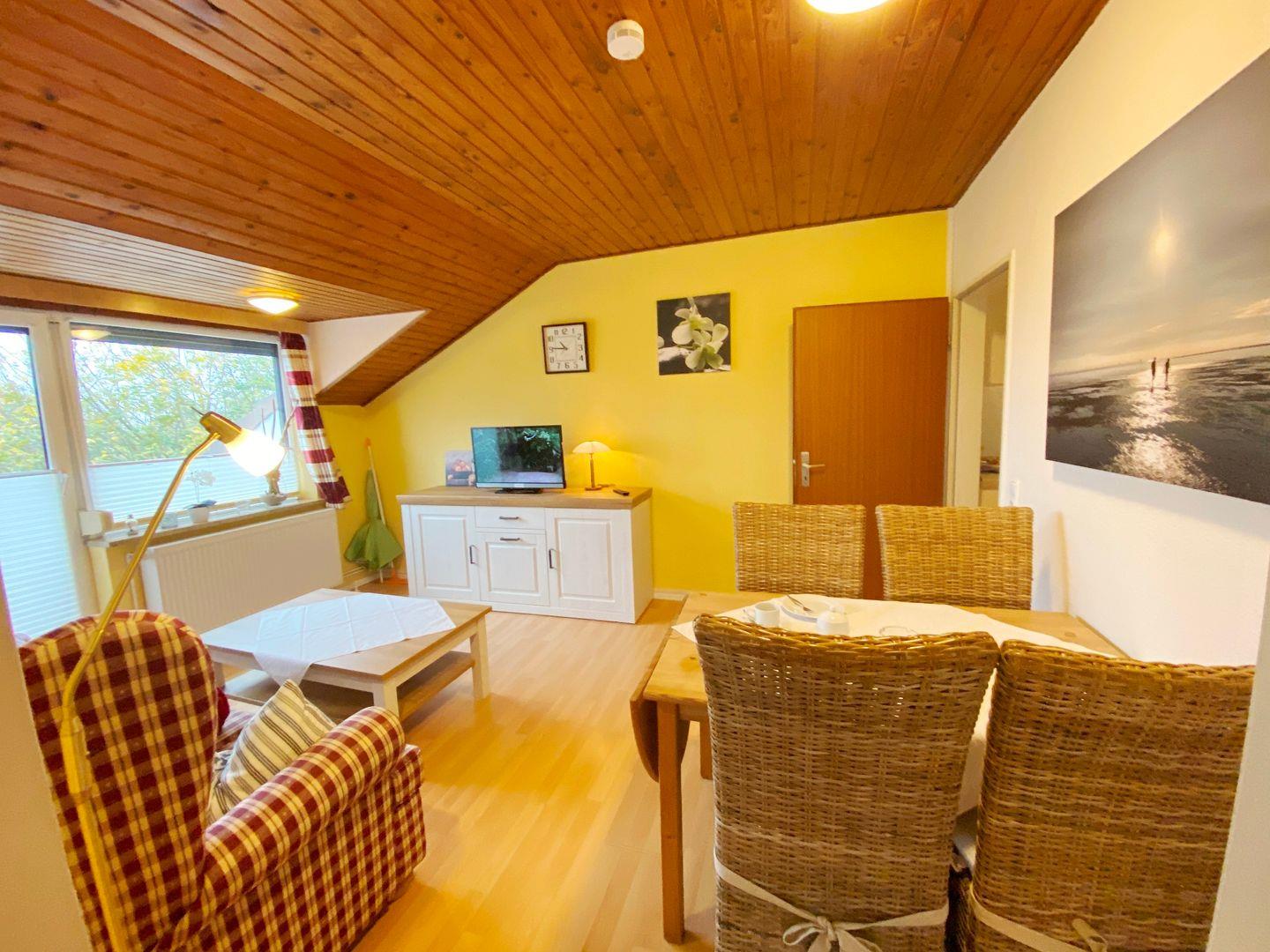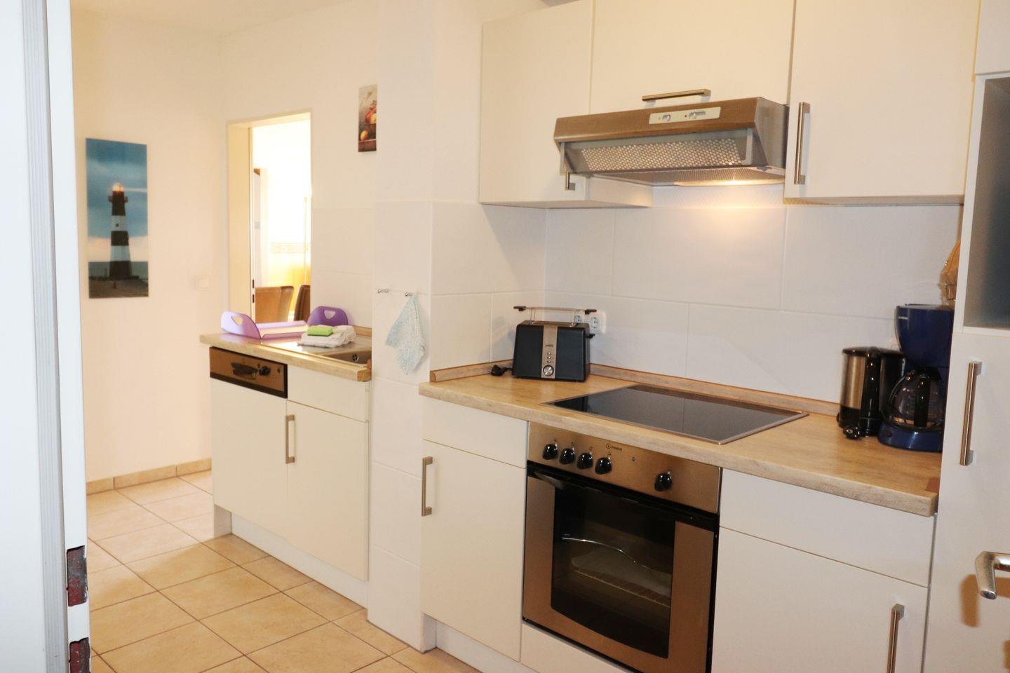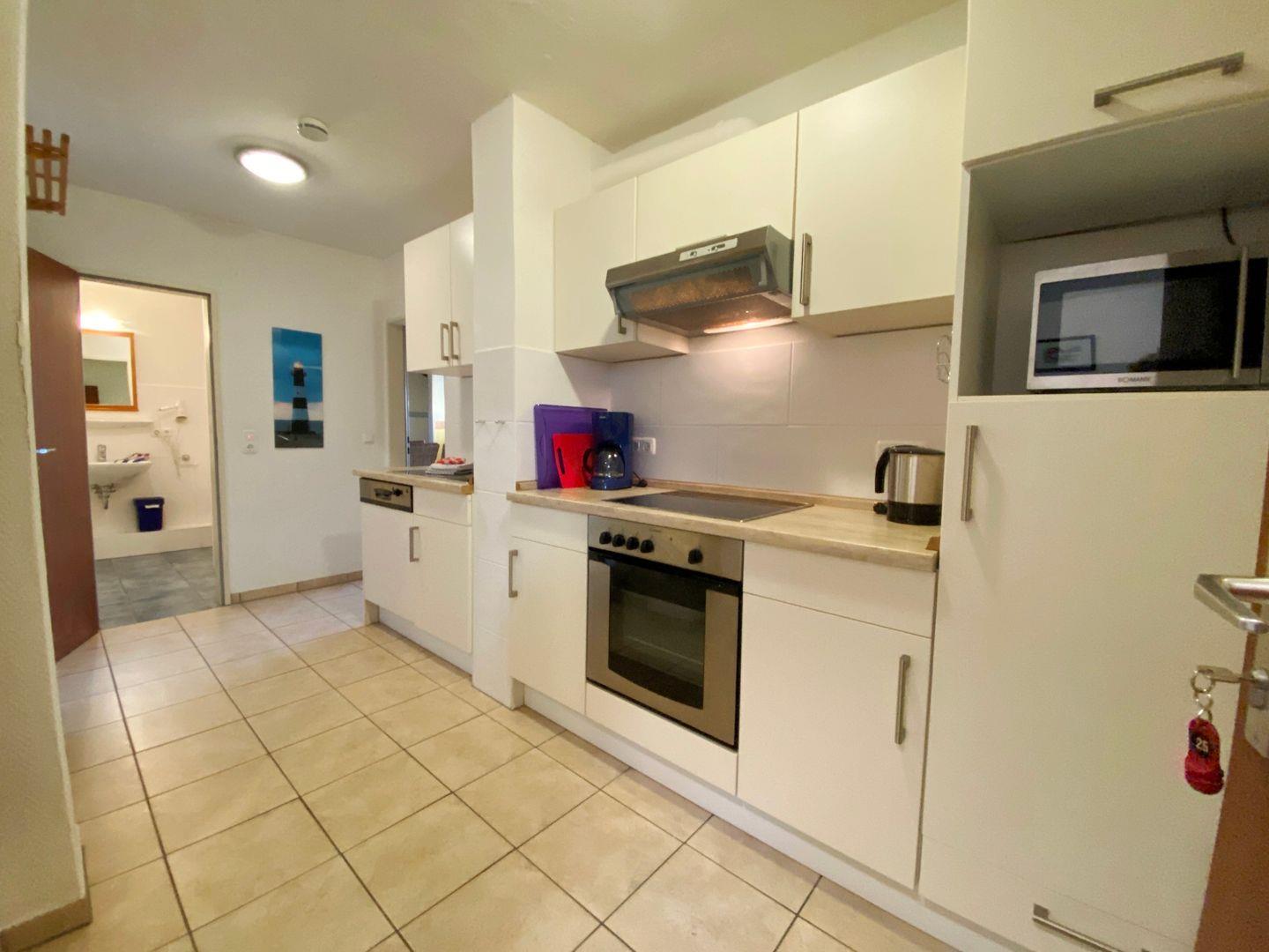 Das 3-Raum Appartement im 2. OG auf ca. 48 m² hat 2 Schlafzimmer(1 x Doppelbett, 1 x Etagenbett ), ein Wohnzimmer mit Balkon zur Seeseite (Süden) mit Blick in den Kurpark, separate Küche und Duschbad. Die Wohnung ist gemütlich eingerichtet. Die Einbauküche verfügt über einen Geschirrspüler, Backofen, Mikrowelle, Wasserkocher, Kaffeemaschine, Toaster, sowie Geschirr für den täglichen Bedarf sind ebenfalls vorhanden. Haustiere sind nicht erlaubt.