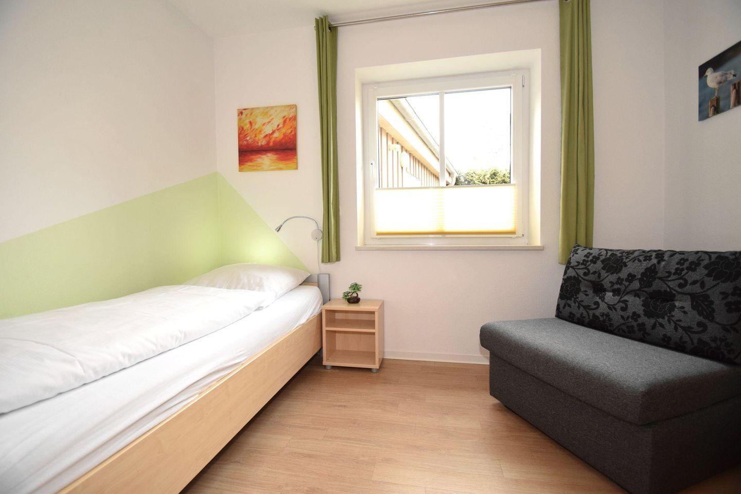 2 Schlafzimmer: Das eine Schlafzimmer ist mit einem Doppelbett und TV ausgestattet, das andere Schlafzimmer verfügt über ein Einzelbett und TV sowie über einen zusätzlichen Schlafwürfel.