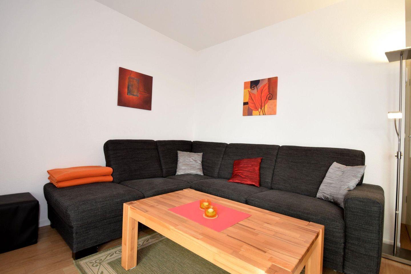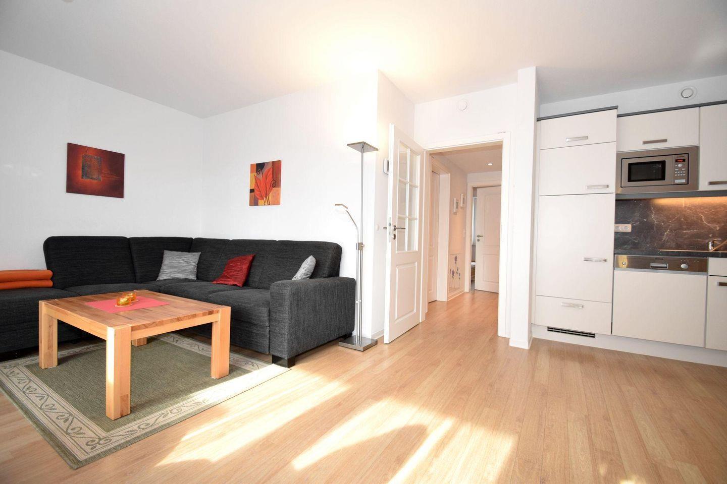 Die Ferienwohnung 0.1 (71qm) liegt im Erdgeschoss und ist eine helle, moderne 3-Raum-Wohnung mit Terrasse in Südwest-Lage. Die Küchenzeile und der Essbereich sind direkt im Wohnbereich integriert. Das Bad verfügt über eine ebenerdige Dusche, WC.
