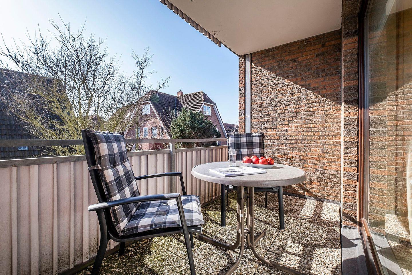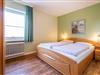 Das Bad verfügt über eine Dusche/WC. Vom Wohnbereich gelangen Sie auf den Balkon. Das eine Schlafzimmer verfügt über ein Doppelbett und das zweite Schlafzimmer über 2 Einzelbetten. Der Wohnung ist ein PKW - Stellplatz direkt am Haus zugehörig. Einen offenen Fahrradunterstand halten wir für Sie bereit.