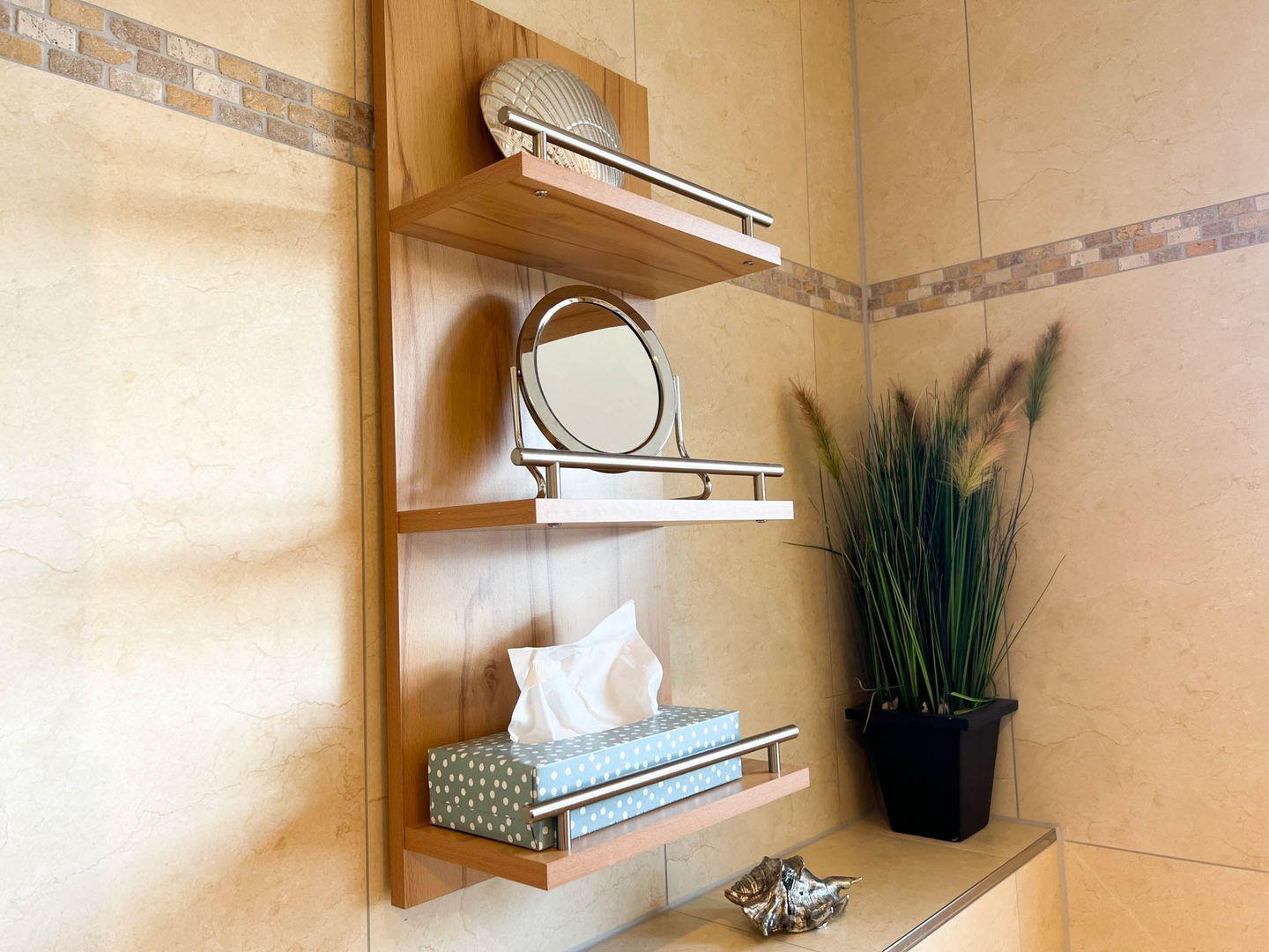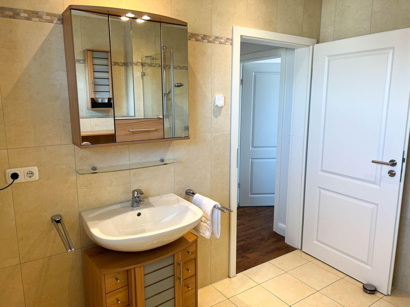 Das Bad verfügt über eine ebenerdige Dusche und die Wohnung hat ein separates Gäste-WC.