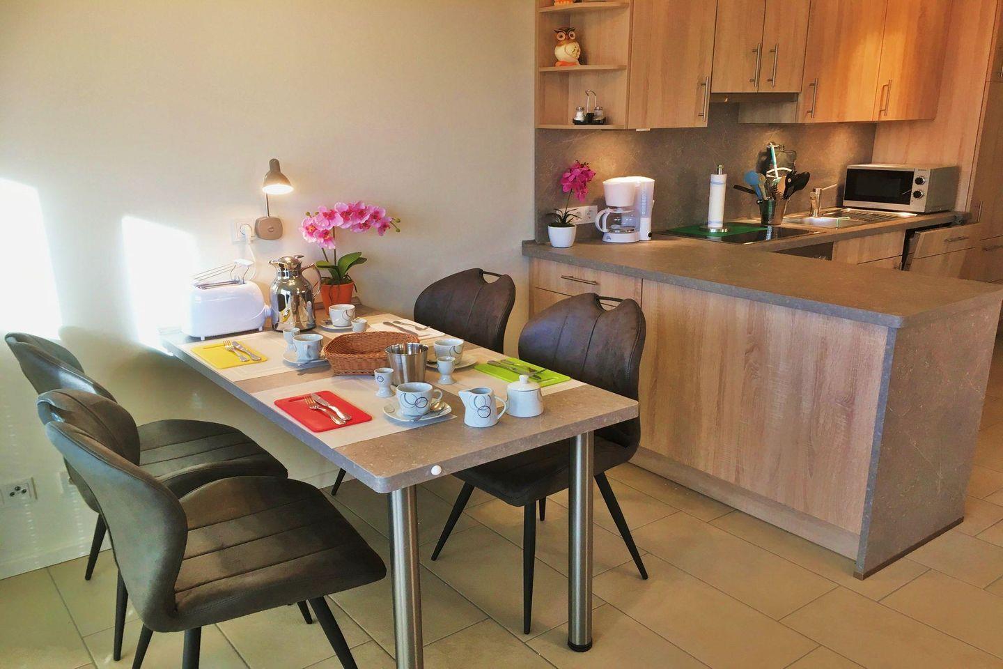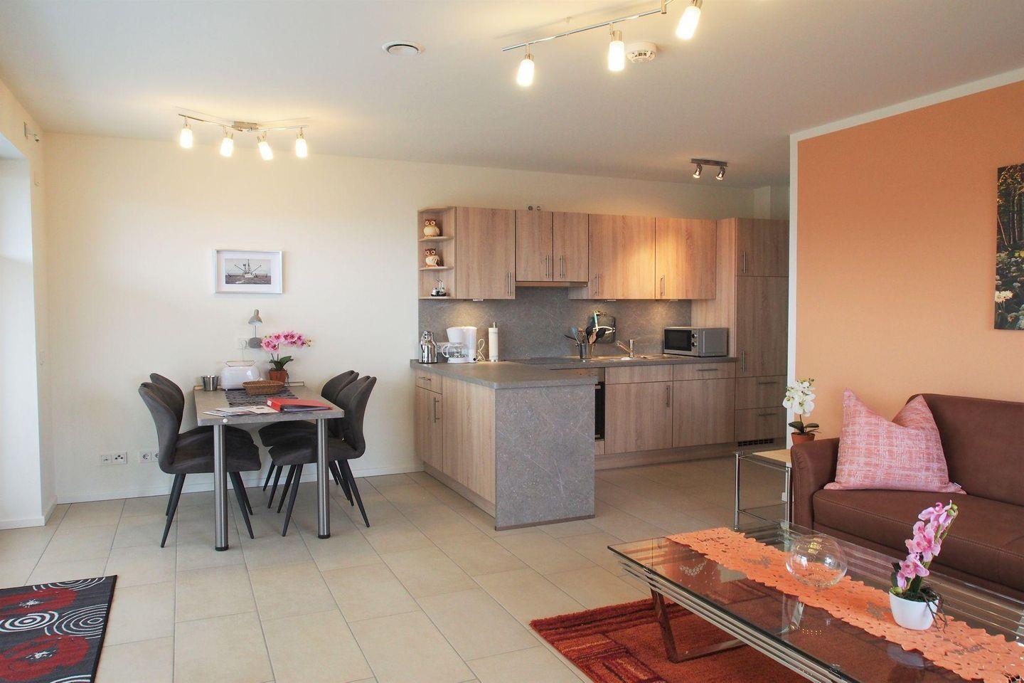 Das Apartment ist ein reines Nichtraucherobjekt und eignet sich durch seine moderne Ausstattung, die hochwertige Einrichtung und die durchdachte Aufteilung besonders sowohl für längere Aufenthalte als auch für einen kurzen Erholungsurlaub. Gerätschaften wie Bügelbrett, Bügeleisen, Staubsauger und Geschirrhandtücher sind vorhanden und runden das Wohlfühlangebot ab.