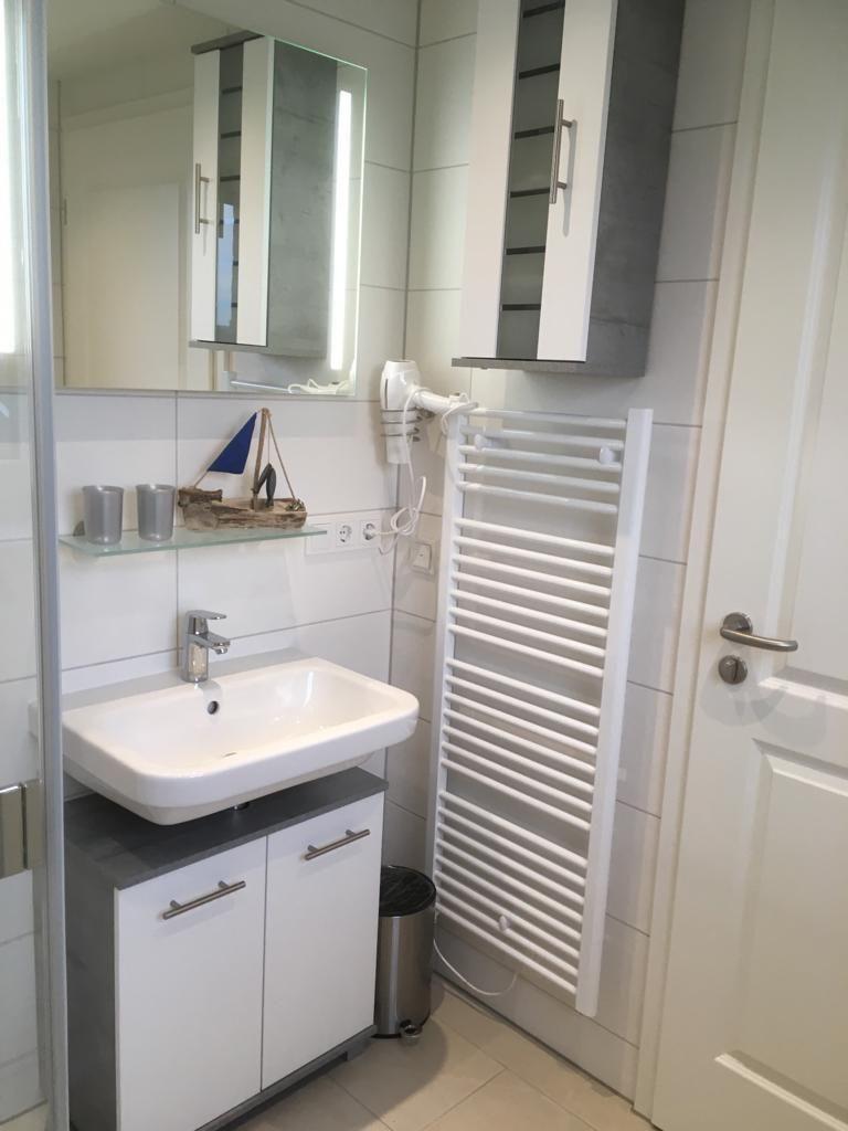 Sanitär: 2 komplette Duschbäder, je mit Handtuchheizung, je ein Haar-Föhn pro Duschbad, Kosmetikspiegel