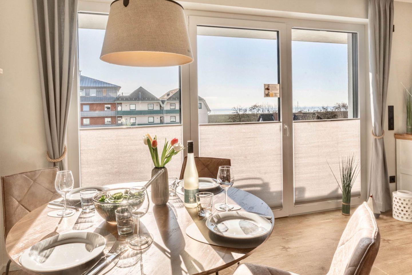 Das Apartment 3.1 "DWARSLÖPER" befindet sich im 3.OG, Außenlage und hat einen großen Balkon in Südwestlage mit wundervollem Ausblick bis zur Nordsee. Die neue Küche erfreut den Gast mit hochwertigen Markengeräten. Am runden Esstischgenießen Sie beim Essen den Nordseeblick und im übergehenden Wohnzimmer, aufgrund der neuen Möbel, der maritimen Dekoration und der hübschen Farbe an den Wänden eine wunderbare, angenehme Wohlfühlatmosphäre.