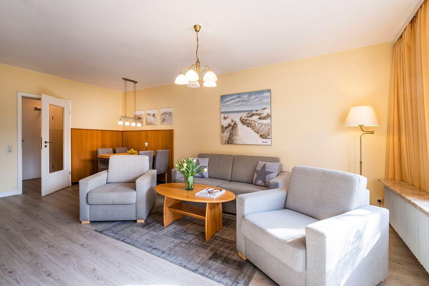 1 Wohnzimmer mit Essbereich, eine kleine separate Küche,1 Schlafzimmer und 1 Duschbad .