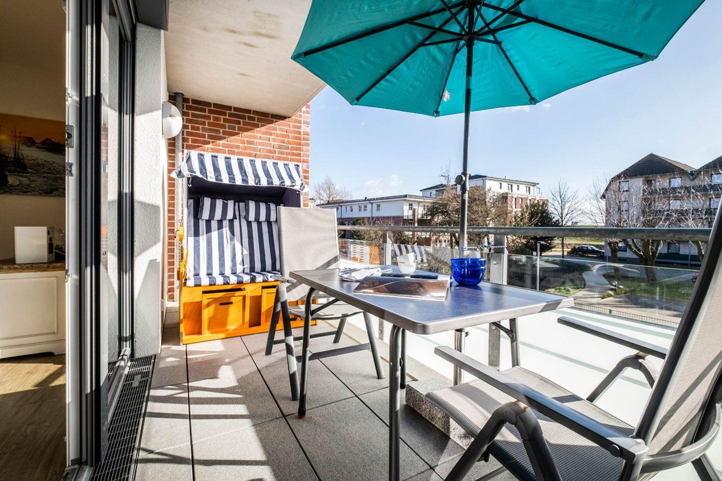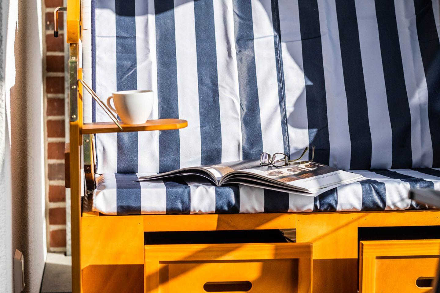 Balkon: Balkonmöbel, Strandkorb.