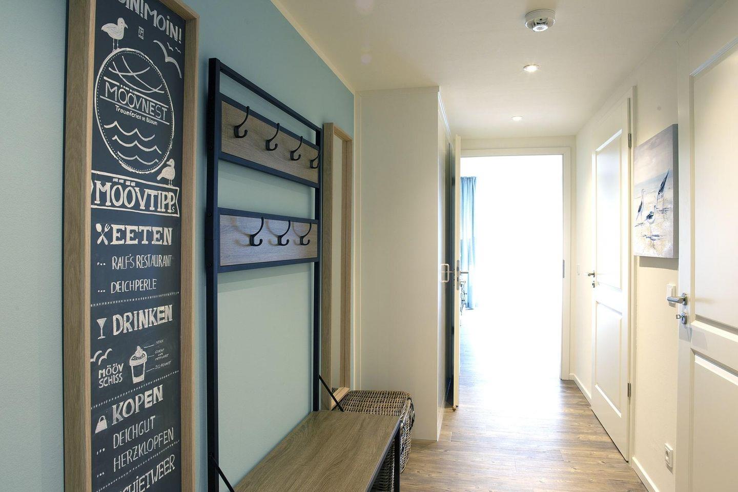 Vom eingangsnahen Stellplatz geht‘s direkt über den Eingangsbereich des Hauses "Strandläufer" zum im Erdgeschoss gelegenen Appartement, das über eine Gegensprechanlage mit Kamera verfügt.