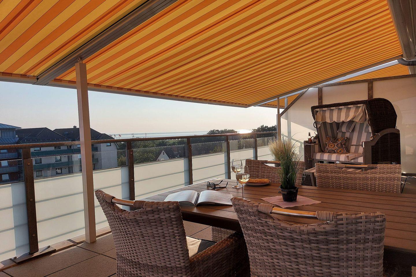 Balkon: Balkonmöbel, Strandkorb, Markise