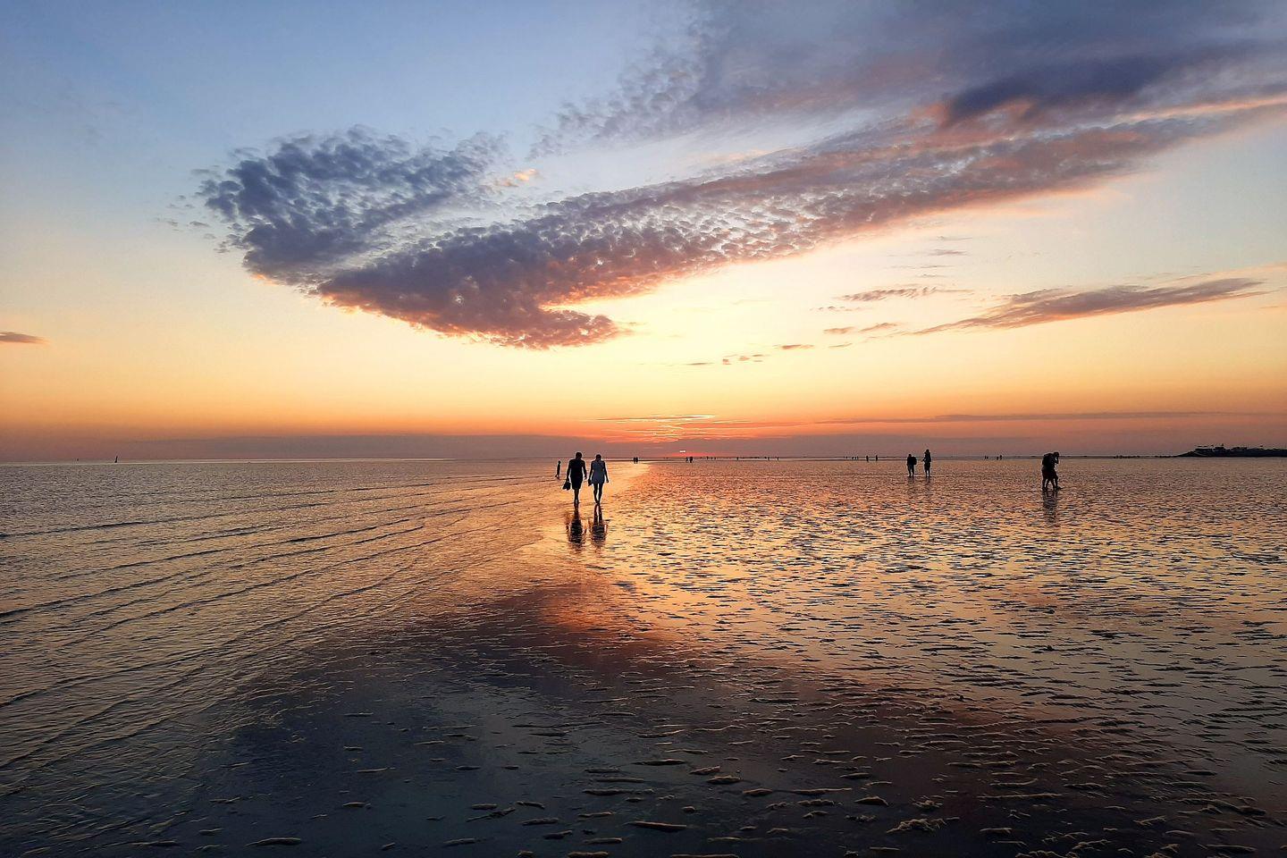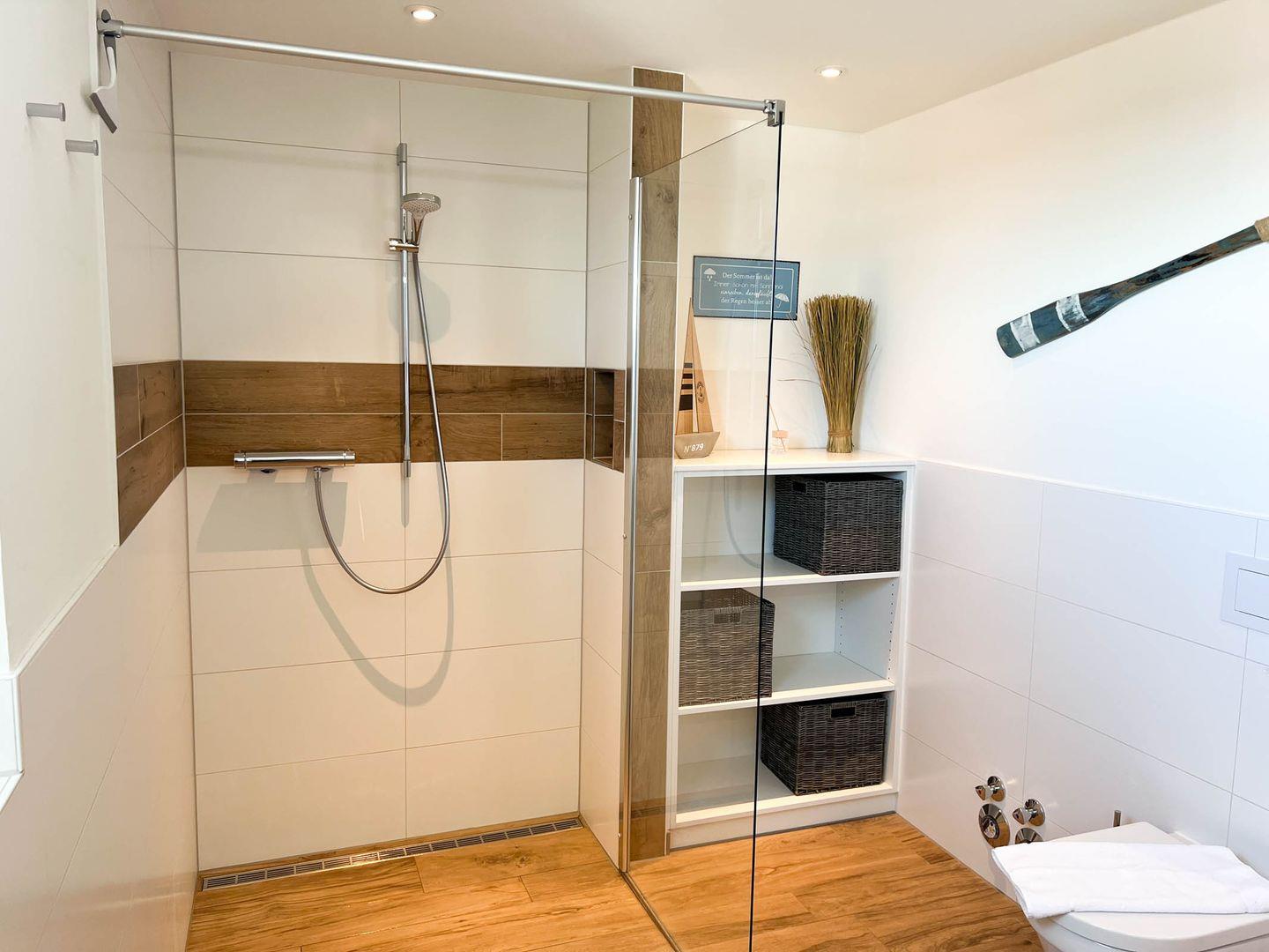 Dieses komfortable, barrierefreie Penthouse-Appartement "Nordsee-Lounge" hat eine Größe von 110 qm und befindet sich im 4. OG der Wohnanlage "Strandläufer". Die modern und gemütlich eingerichtete Ferienwohnung überzeugt durch hohe Qualität in der Ausstattung und wird von den Eigentümern persönlich eingerichtet. Vom eingangsnahen Stellplatz gelangen Sie über den Fahrstuhl direkt in das 4. OG des Hauses "Strandläufer" und zur Wohnung 4.4. Vom großzügigen Flur der Wohnung gelangen Sie in das 1. Schlafzimmer. Das Zimmer mit Süd-Westlage verfügt über ein hochwertiges Boxspring-Doppelbett (180 x 200 cm), einen Kleiderschrank und einen Flatscreen-Monitor an der Wand. Gerade zum Sonnenaufgang haben Sie einen einmaligen Blick über die Dächer von Büsum mit Kirche und Büsumer Hafeneinfahrt. Neben dem Schlafzimmer befindet sich das großzügige 1. Bad mit einer eigenen Sauna und einer barrierefreien Dusche. Direkt gegenüber befindet sich das 2. Schlafzimmer mit einem 180 x 200 cm breiten Doppelbett und Flatscreen-TV an der Wand. Neben dem 2. Schlafzimmer befindet sich ein Abstellraum mit Abstellfläche für Koffer oder anderes Equipment. Daran schließt dann das 2. Badezimmer an. Dieses beinhaltet unter anderem eine Badewanne für ein entspanntes Bad an kälteren Tagen. Am Ende des Flurs gelangen Sie in das Highlight der Wohnung: das offene Wohnzimmer / Küchenbereich samt großzügiger Dachterrasse (27 qm) mit phantastischem Ausblick über Büsum und zur Nordsee. In der Küche erwartet Sie eine moderne Ausstattung, unter anderem mit Bora Induktionsherd. Im Wohnzimmer laden eine gemütliche Wohnlandschaft sowie eine komfortable Relax Liege zum Entspannen und Träumen ein. Auf der großen Dachterrasse in Süd-Lage finden Sie einen typisch norddeutschen Strandkorb mit Platz für 2 Personen vor. Auch ein Balkon-Esstisch und 2 Sonnenliegen gehören hier mit zur Ausstattung. Ob zum Frühstück oder zum Abend: Sie werden den Ausblick und vor allem den Sonnenuntergang genießen!