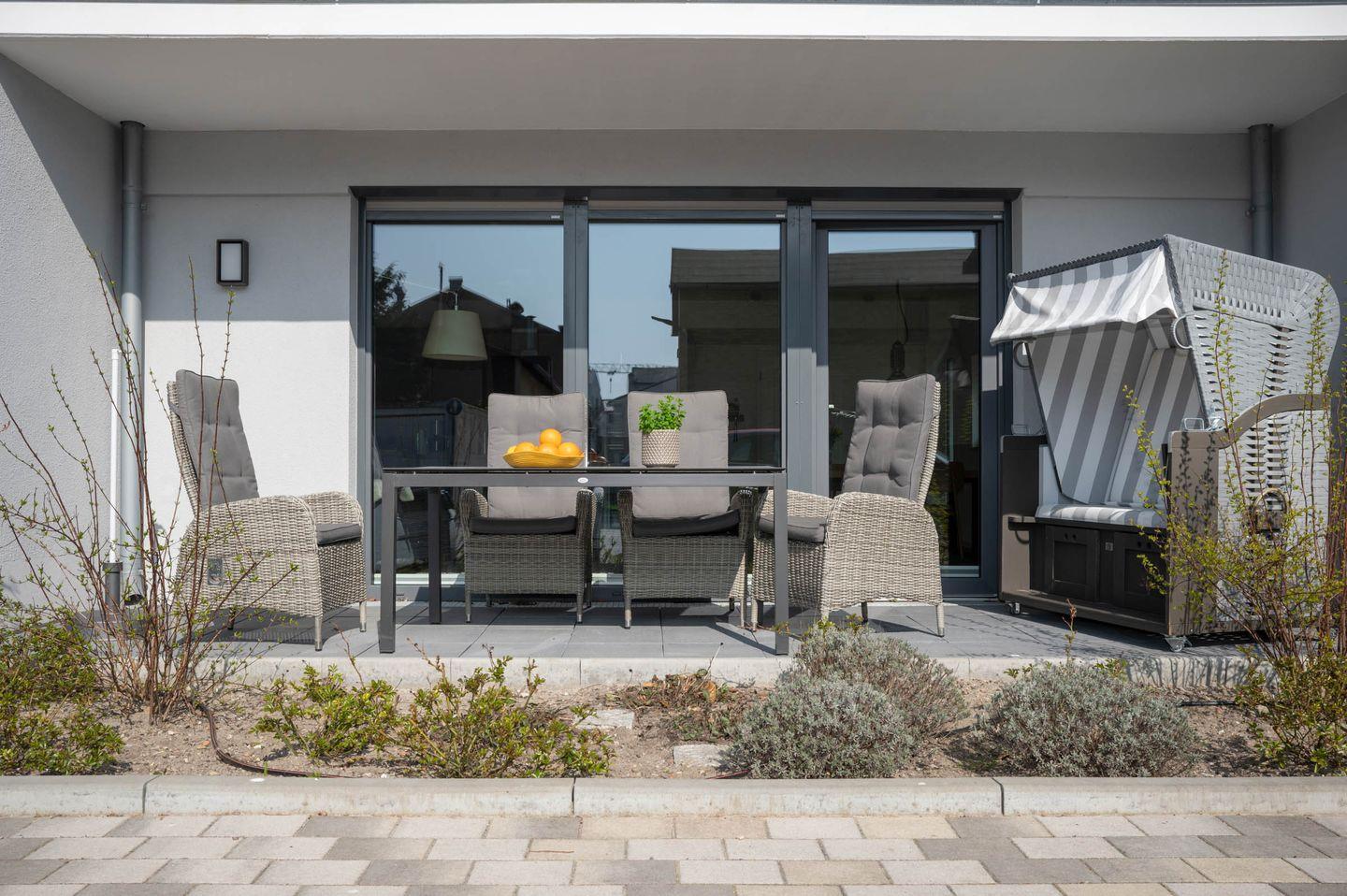 Ein Strandkorb für die Nutzung durch alle Feriengäste steht am Haus für Sie bereit.