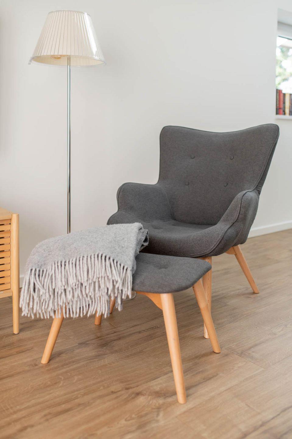 Der Neubau bietet ein gemütliches, naturverbundenes Ambiente durch die Kombination aus norddeutschem Charme und hochwertigem, nachhaltigem Design. Der Blick ins Grüne aus dem Schlafzimmer und die Möglichkeit, die Sonne auf dem eigenen Balkon zu genießen, steigert den Wohlfühlfaktor. Doch selbst wenn das gute Wetter mal ausbleibt, ist das kuschelige Sofa der perfekte Rückzugsort.