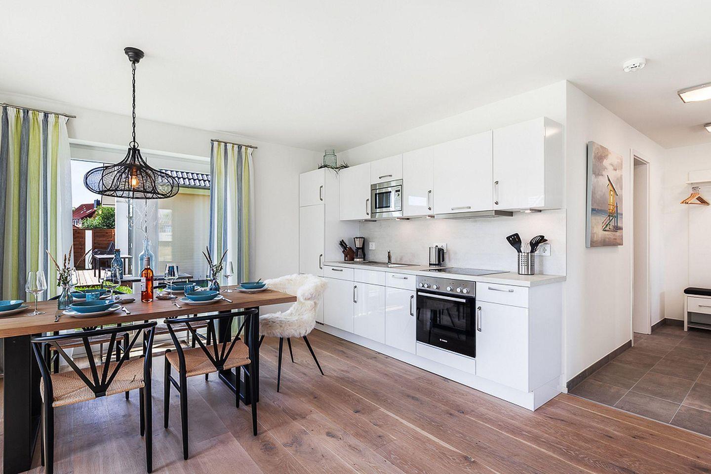Hobbyköche können sich in der modernen Nobilia-Küche mit hochwertiger Ausstattung austoben und ein tolles Menü zaubern. Zum Lunch trifft man sich am schönen Esstisch, der Platz bietet für sechs Personen. Und den abschließenden Sundowner nimmt man bei Sonnenuntergang auf der windgeschützten Terrasse ein.