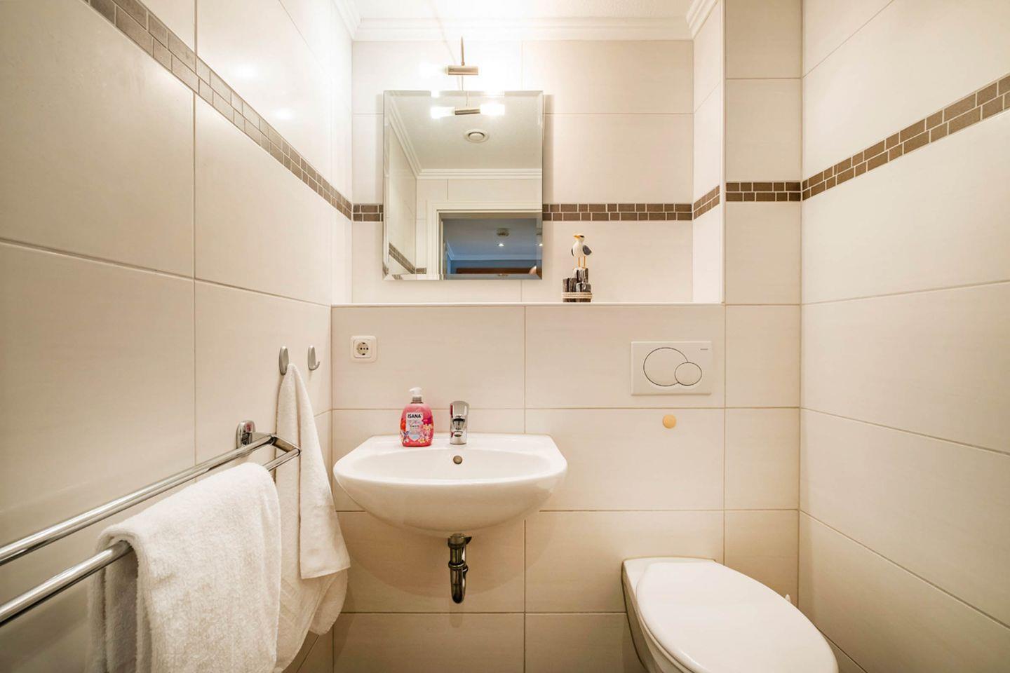 Sanitär: Duschbad mit ebenerdiger Dusche, Haar-Föhn, Kosmetikspiegel