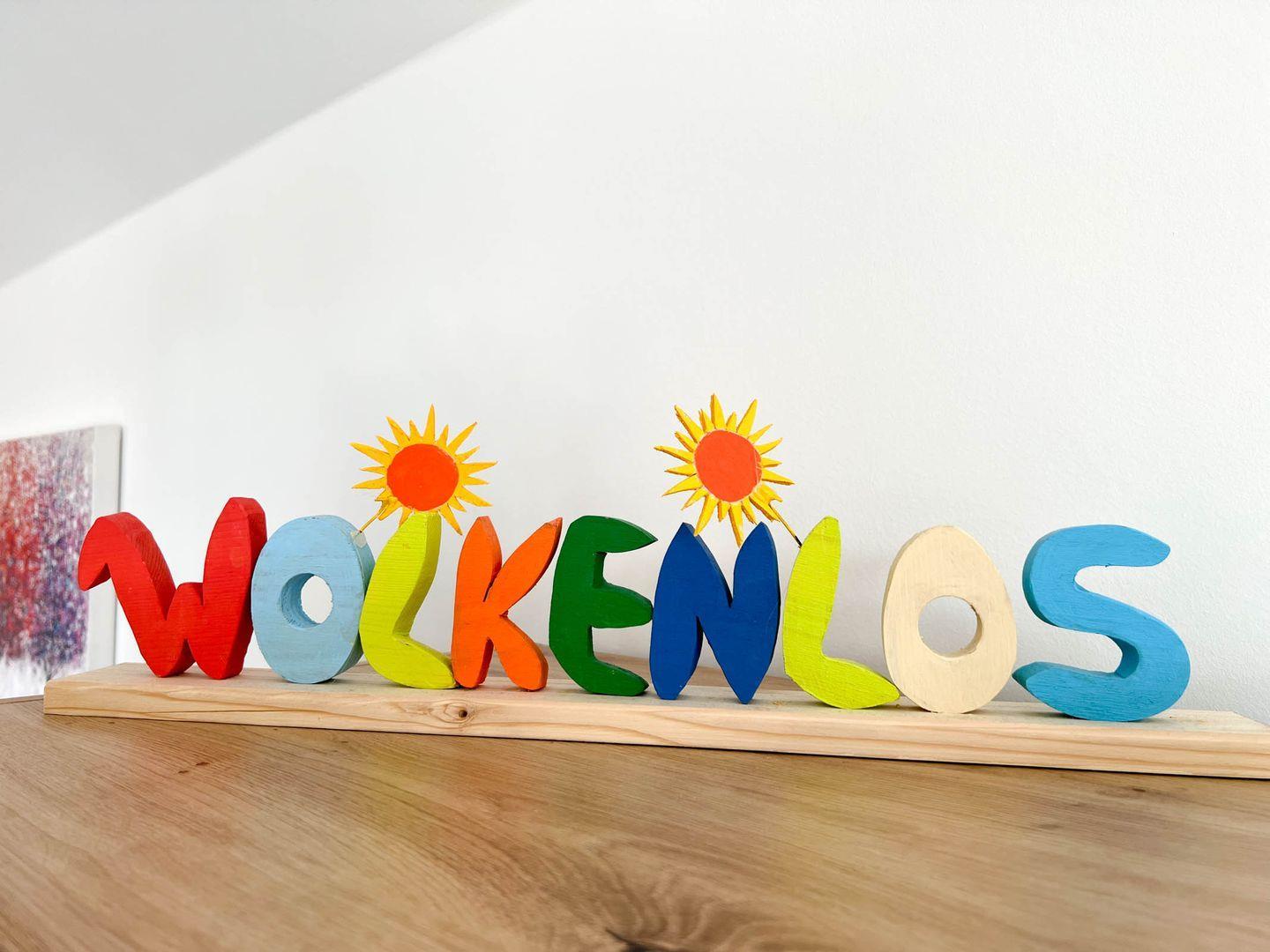 Die Ferienwohnung „Wolkenlos“ liegt im Obergeschoß eines Hauses mit 4 Wohnungen. Die Wohnung hat eine Wohn-/Nutzfläche von 80 m2 und verfügt über zwei Terrassen.