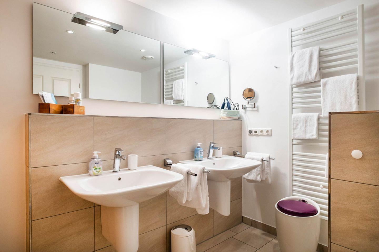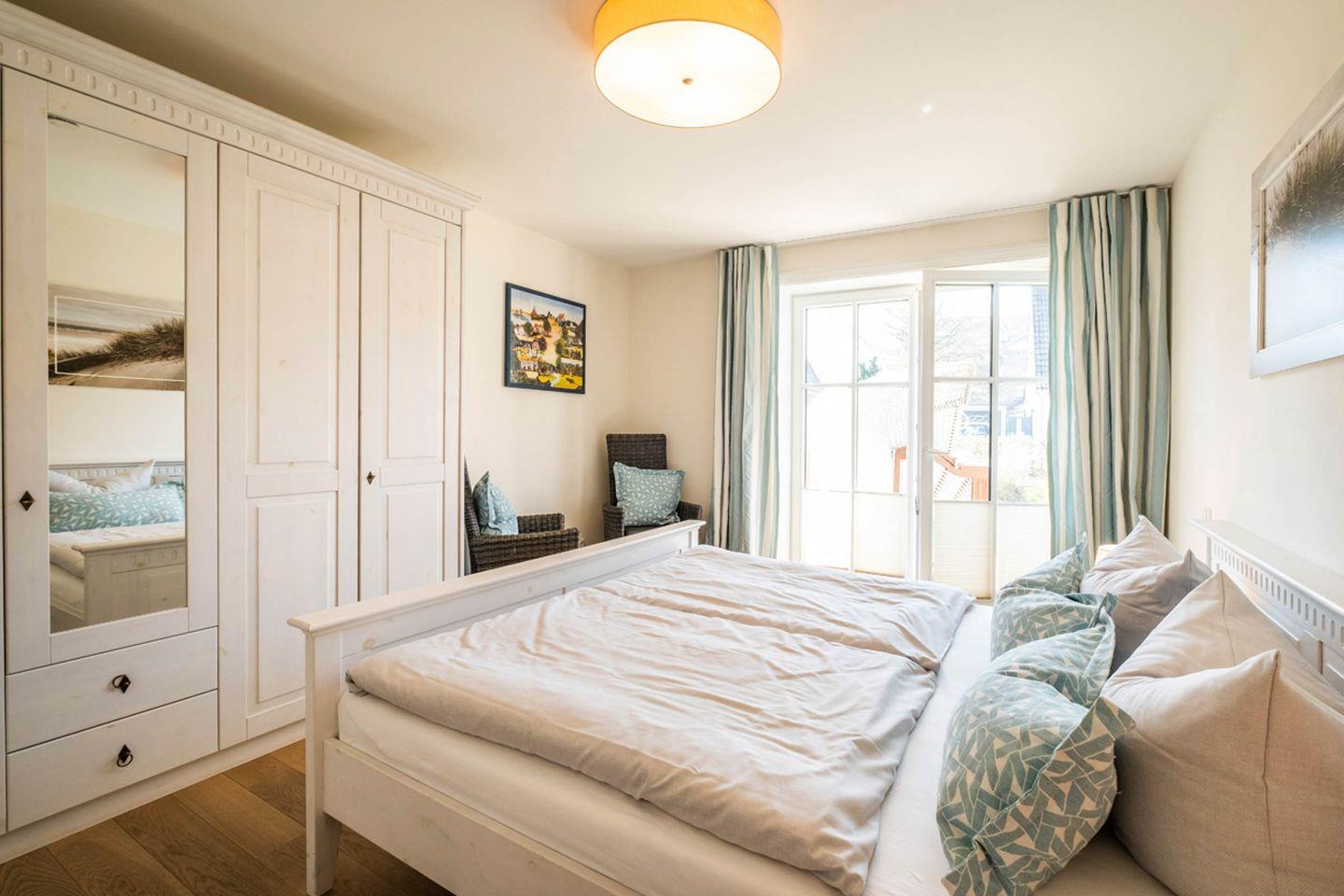 Das Appartement 1.1 befindet sich im Erdgeschoss mit Terrasse. Im Wohnraum finden Sie eine gemütliche Couchgarnitur, Sessel mit Hocker und einen Relax-Sessel. Die Küche und der Essbereich sind im Wohnbereich integriert. Beide Schlafzimmer sind mit Doppelbetten in Komforthöhe ausgestattet. Ein Schlafzimmer mit TV. Das Bad verfügt über eine barrierefreie Dusche, WC und Sauna. Das Appartement verfügt zusätzlich über ein Gäste- WC und einer Abstellkammer. Fußbodenheizung befindet sich im ganzen Appartement. Auf die Terrasse gelangen Sie vom Wohnraum und den Schafzimmern, die in Südlage liegt. Das Appartement verfügt über eine Gegensprechanlage mit Kamera. Im Keller finden Sie Waschmaschine und Trockner (gebührenpflichtig), Abstellraum für Fahrräder und einen gemeinschaftlichen Fitnessraum. Aufzug im Haus. Am Haus finden Sie einen weiteren abschließbaren Fahrradabstellraum und einen kleinen Spielplatz für unsere kleinen Gäste.