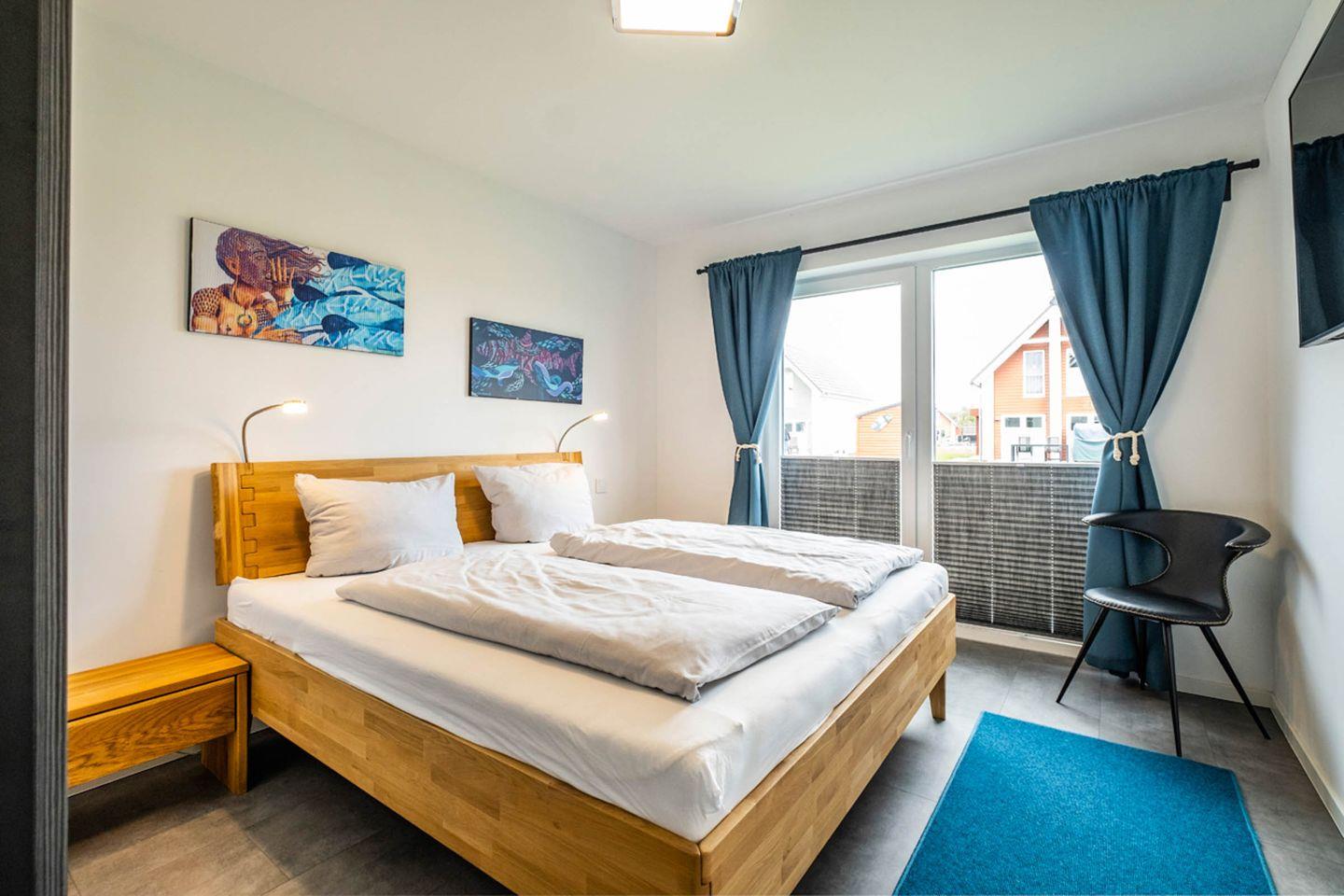 Den Strand erreichen Sie in etwa 10 Minuten zu Fuß. Hier finden Sie neben dem grasbewachsenen Deich auch feinsandigen Strand. Zusätzlich zum entspannten Tag im Strandkorb (für die Hauptsaison für Sie gemietet) können aktive Gäste in der Bucht schwimmen, von der Badeinsel ins kühle Nass springen oder rutschen. Das Wassersportbecken ermöglicht Kite- und/oder Windsurfen, Stand-Up-Paddling (SUP) sowie Tretbootfahren.