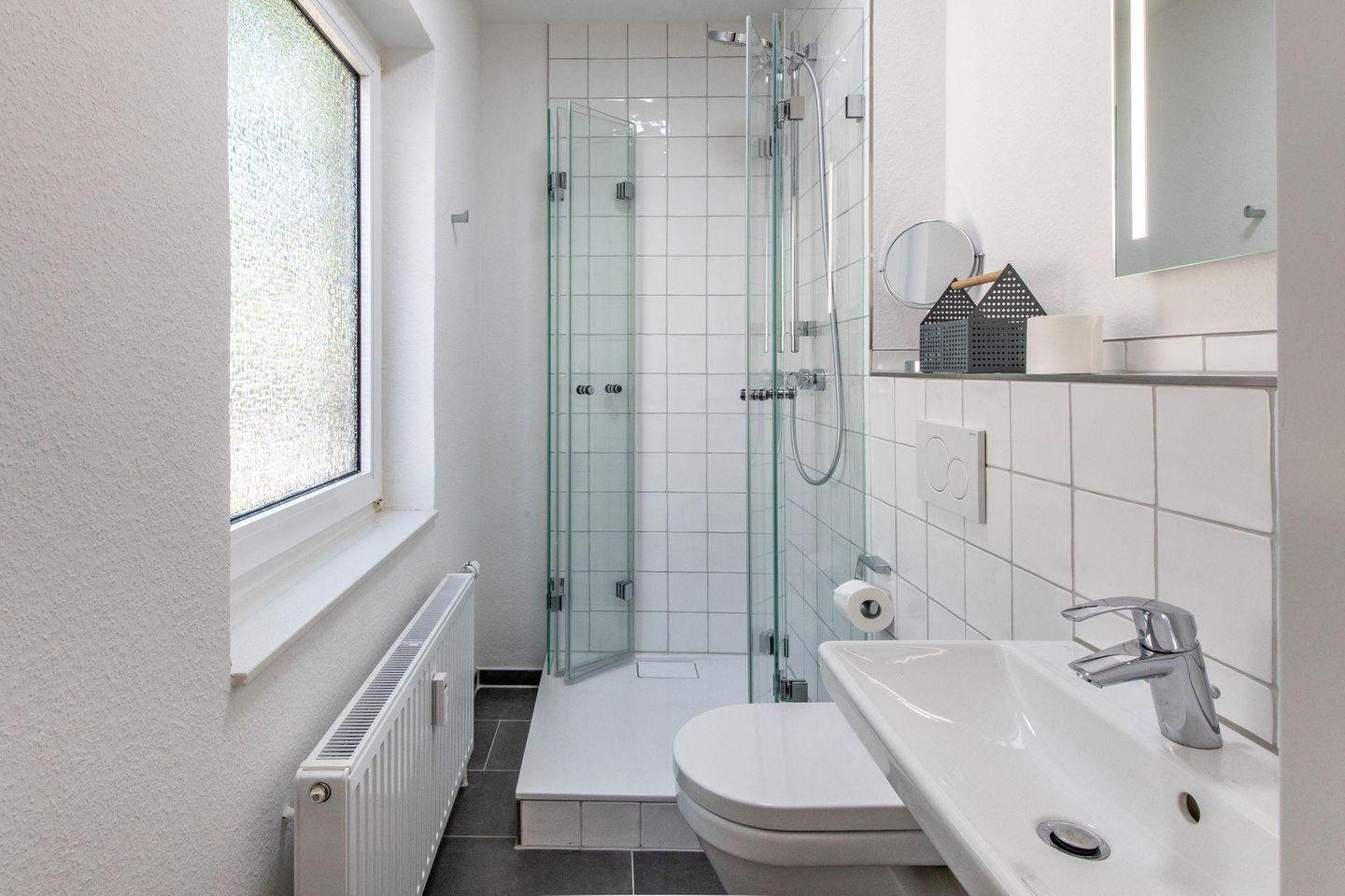 Sanitär: Duschbad, Handtuchheizung, Haar-Föhn, Kosmetikspiegel