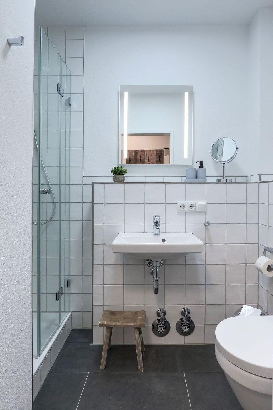 Sanitär: Duschbad, Handtuchheizung, Haar-Föhn, Kosmetikspiegel