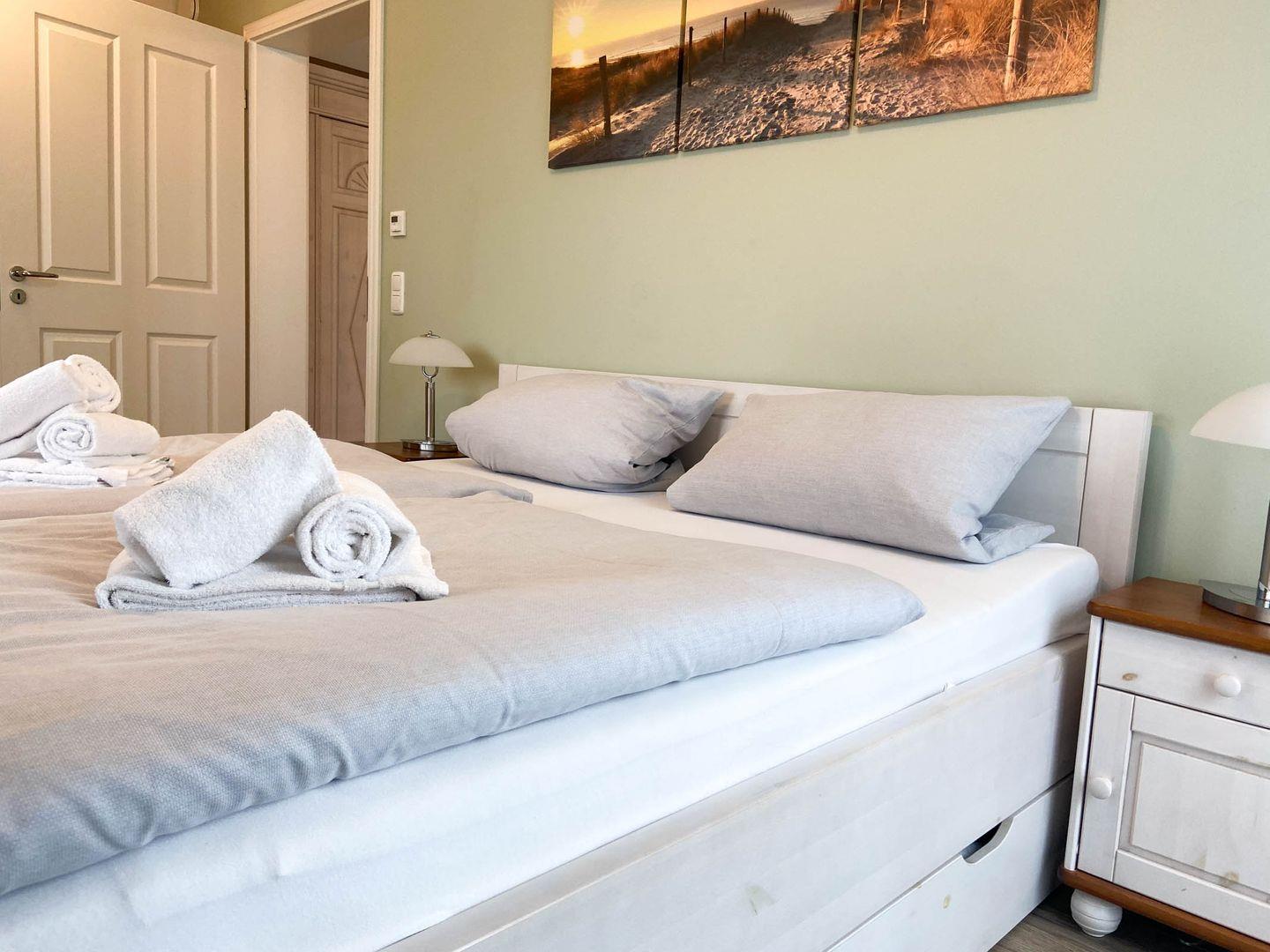 Für erholsame Nachtruhe sorgt das komfortable Schlafzimmer mit Fliesenboden, das Platz für zwei Personen bietet. Ein Badezimmer mit bodengleicher Dusche, Haartrockner und WC ergänzt die Ausstattung. Selbstverständlich ist die Unterkunft auch allergikergeeignet und als Nichtraucherwohnung ideal.