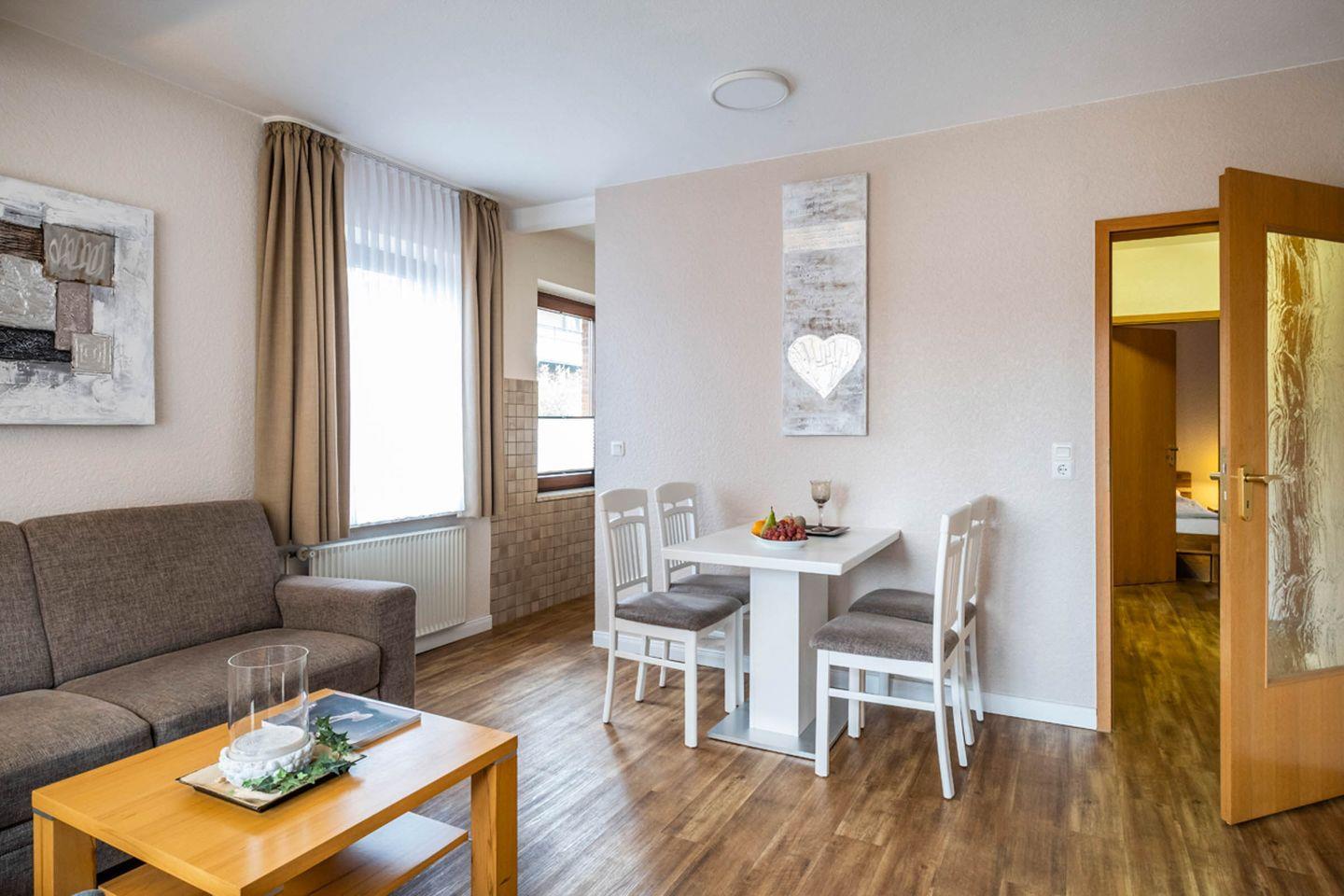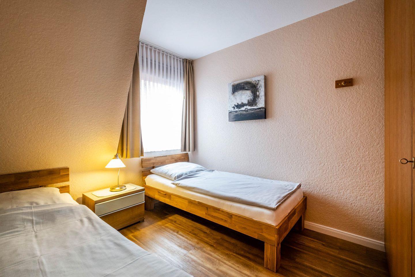 Die Ferienwohnung 6 liegt im 1. Obergeschoss und verfügt über einen Balkon in West-Lage. Es gibt leider keinen Aufzug im Haus.
