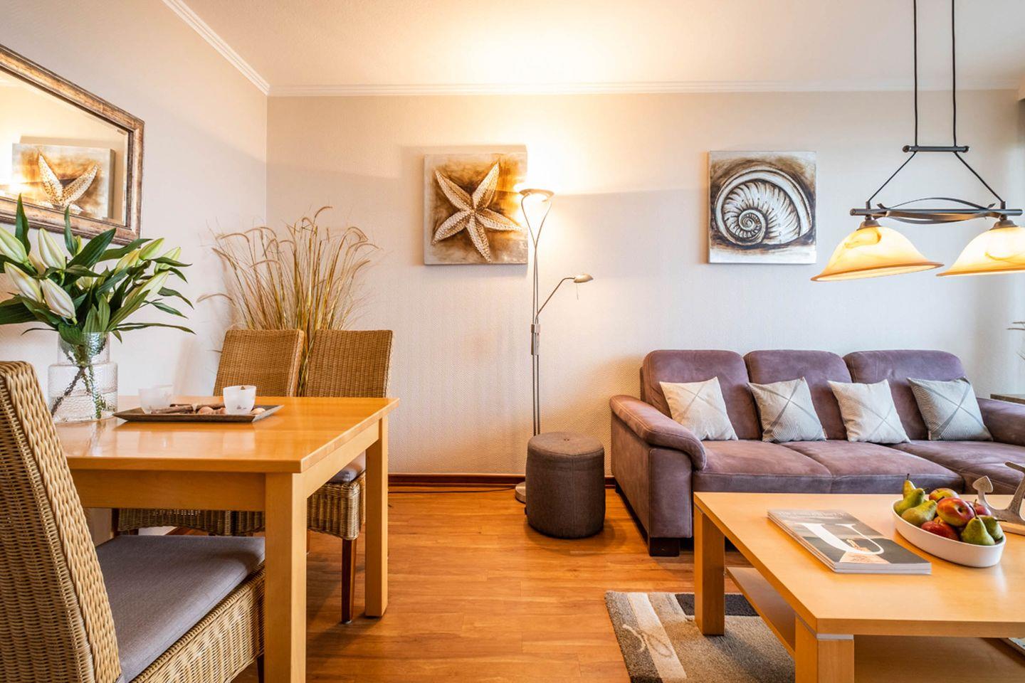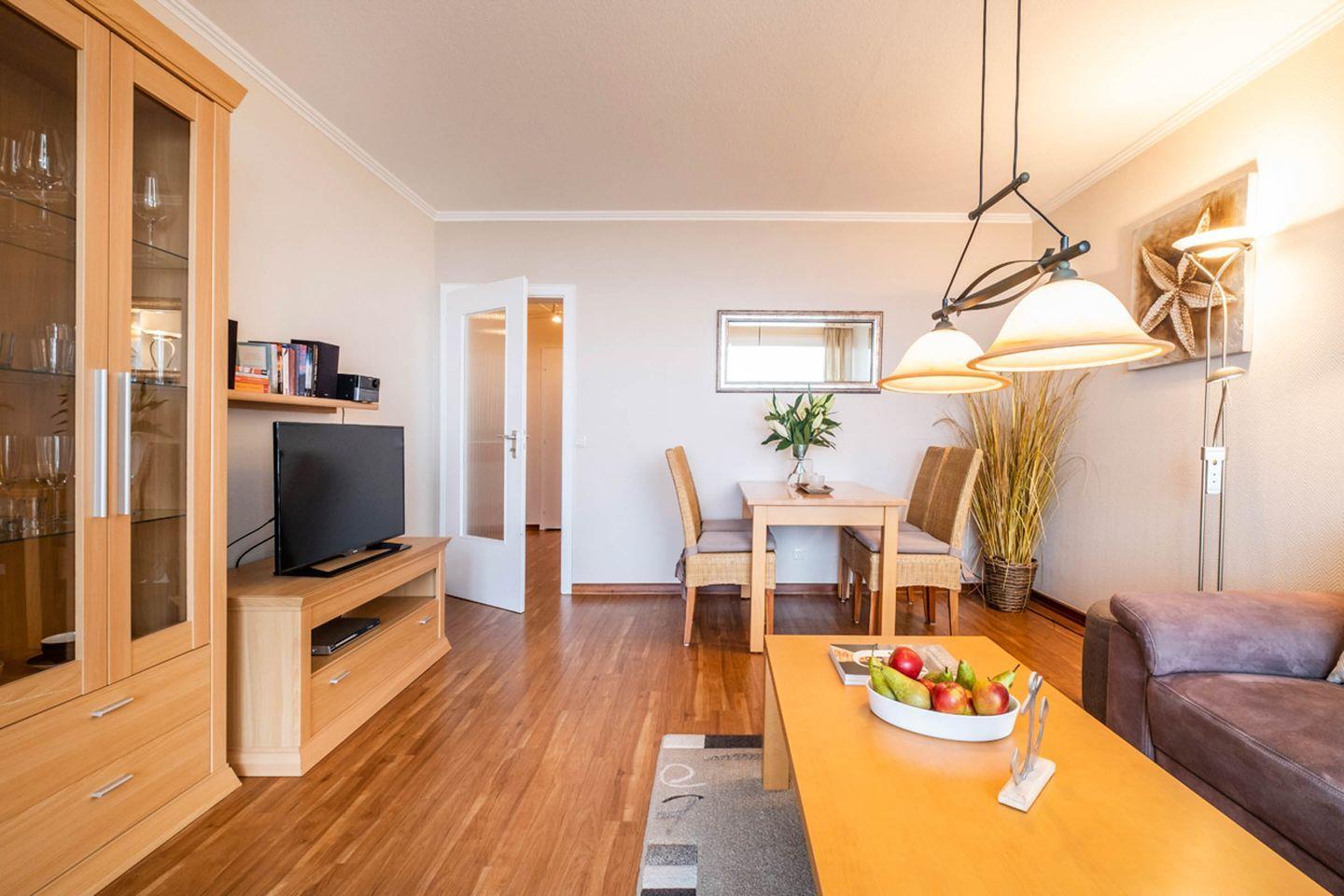 Das Hochhaus Seeblick Appartement 42 in Büsum begeistert mit Meerblick, Balkon und moderner Ausstattung. Auf 55 m² bietet es ein separates Schlafzimmer, ein Wohnzimmer, eine geschlossene Küche mit Spülmaschine und Backofen sowie ein bodengleiches Duschbad. Der Strand, Einkaufsmöglichkeiten und Restaurants sind nur 250 Meter entfernt. Ein Aufzug und ein Privatparkplatz stehen zur Verfügung.