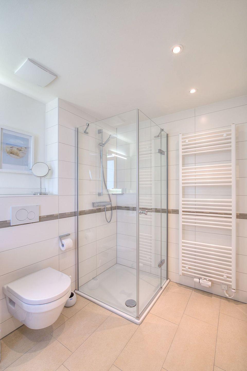 Sanitär: Duschbad mit ebenerdiger Dusche, Haar-Föhn, Kosmetikspiegel