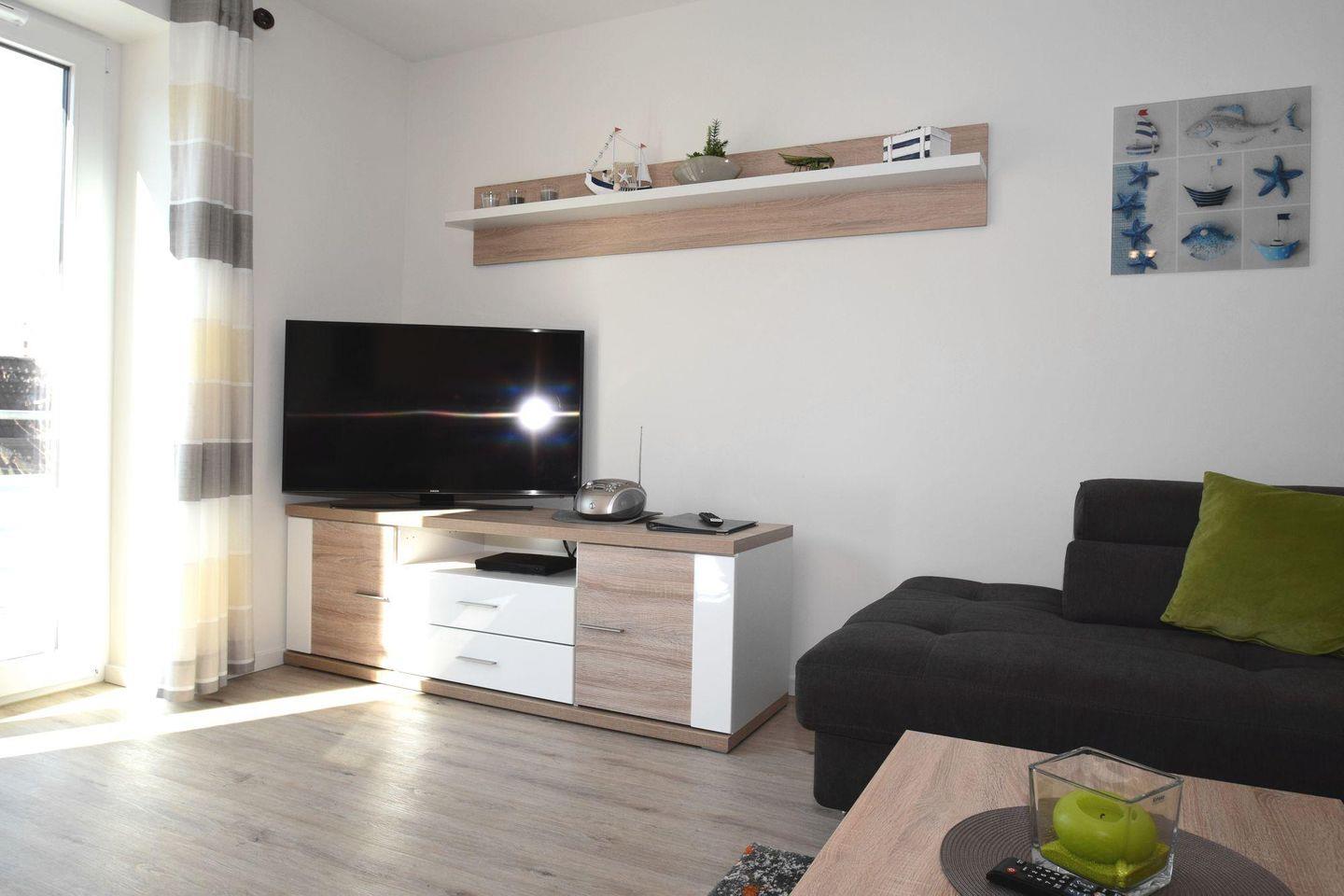 Technik: 2 x TV (Wohn- und Schlafzimmer), WLAN kostenfrei, kleine HIFI-Stereoanlage