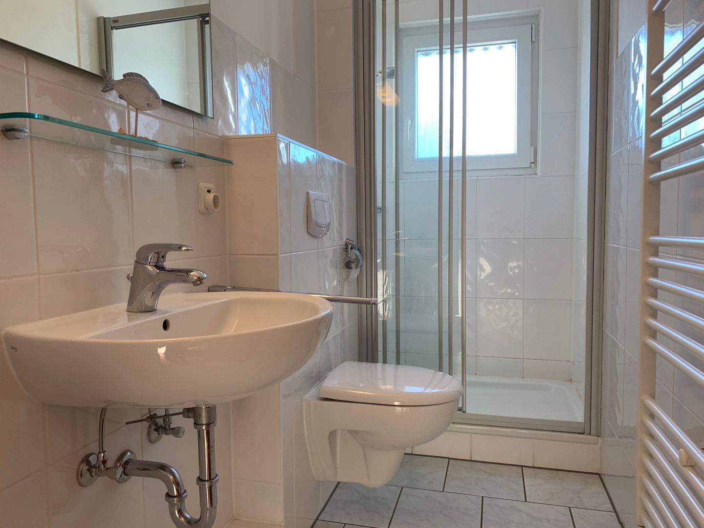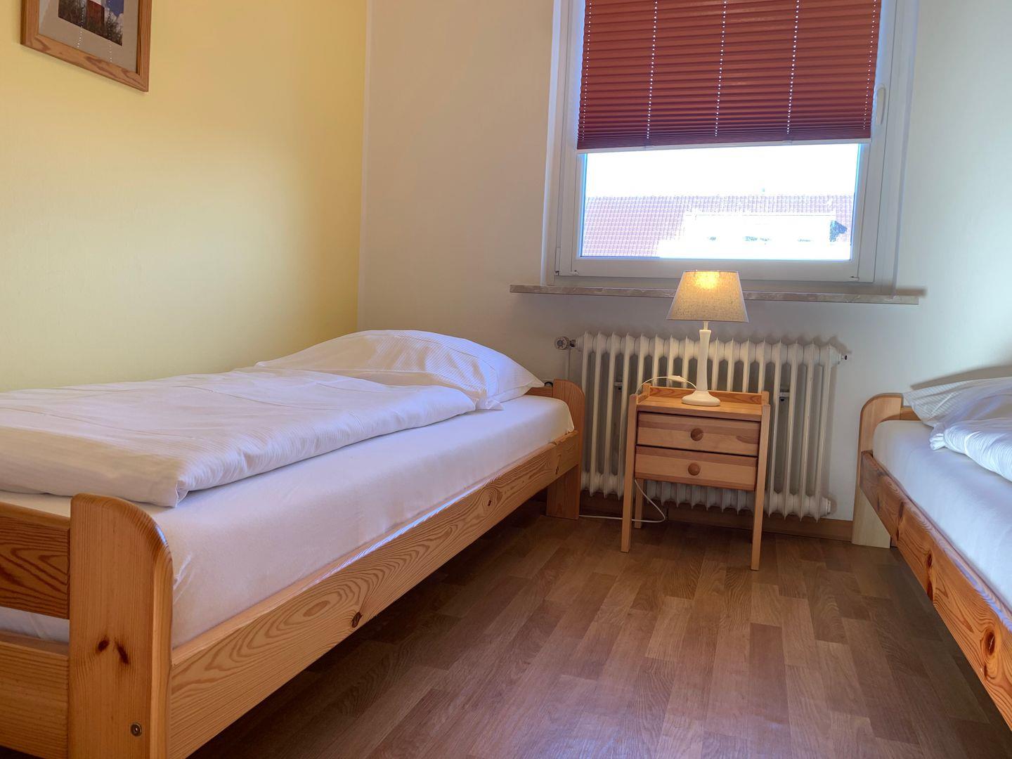 Das Bad verfügt über eine Dusche/WC. Vom Wohnbereich gelangen Sie auf den Balkon. Das eine Schlafzimmer verfügt über ein Doppelbett, das zweite Schlafzimmer über 2 Einzelbetten. Der Wohnung ist ein PKW - Stellplatz direkt am Haus zugehörig.