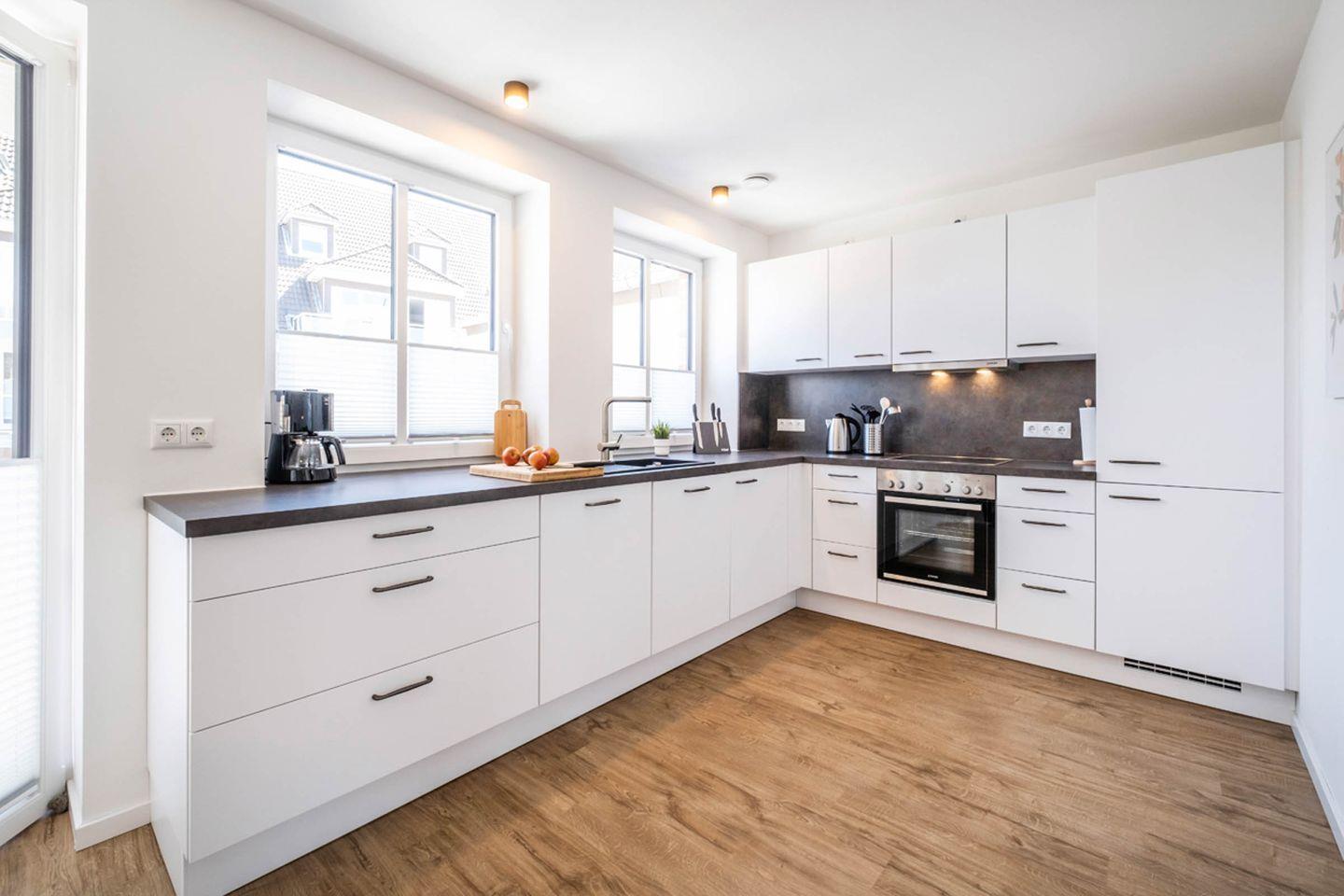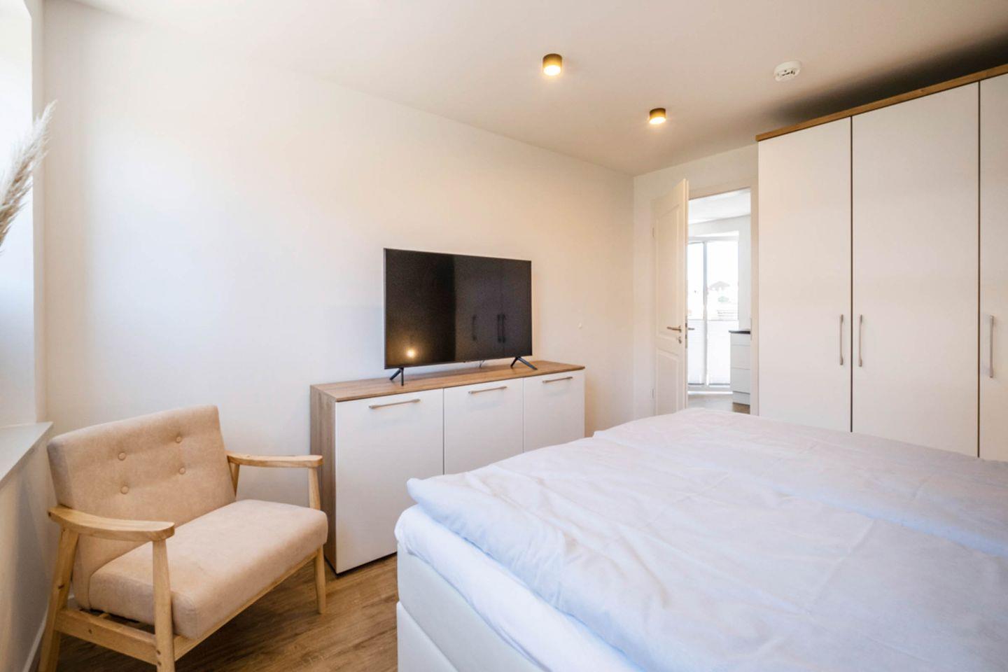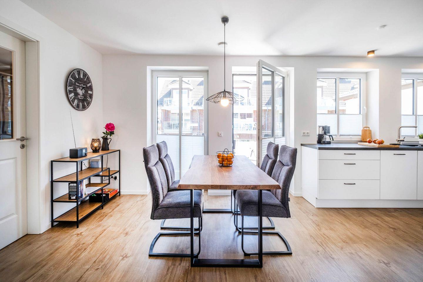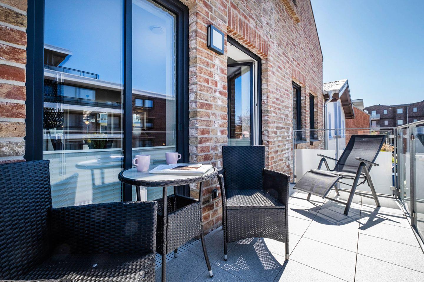 Das Apartment bietet mit 2 Schlafzimmern Platz für 4 Personen. Des Weiteren verfügt das Apartment über einen Wohn- und Essbereich mit einer offenen Küche. Das Tageslichtbad ist mit einer bodentiefen Dusche ausgestattet. Das Highlight des Apartments sind die beiden Balkone.