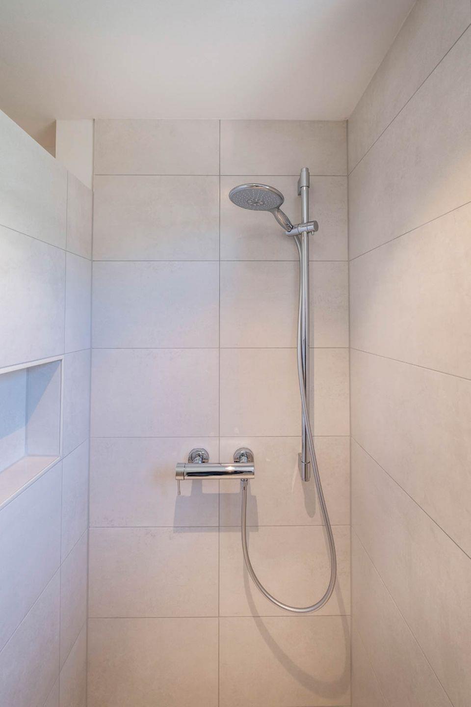 Badezimmer: Dusche, Handtuchheizung, Haar-Föhn, Kosmetikspiegel