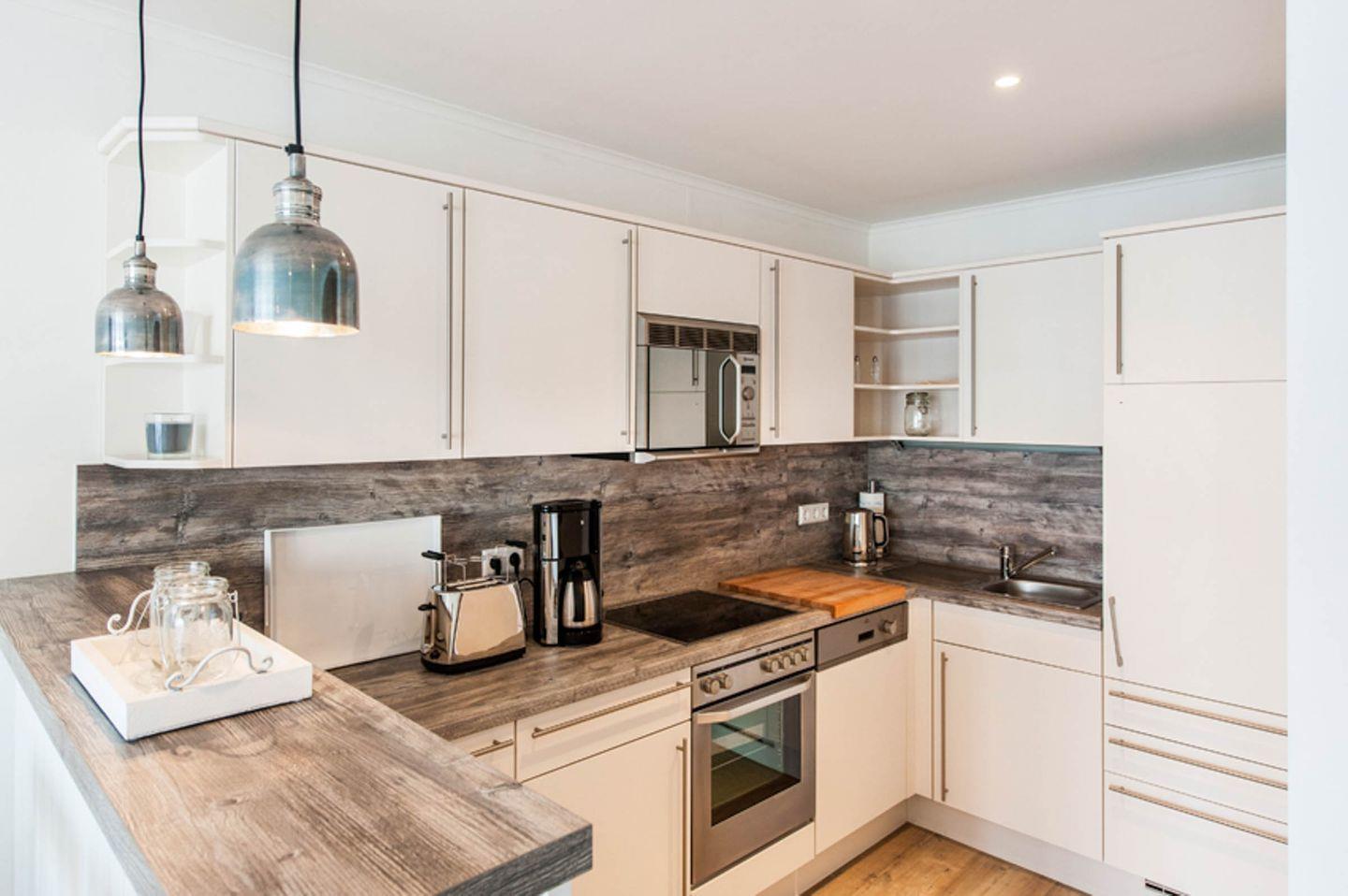 - Küche: Ceranfeld, Backofen, Mikrowelle, Geschirrspülmaschine, Toaster, Wasserkocher, Kaffeemaschine