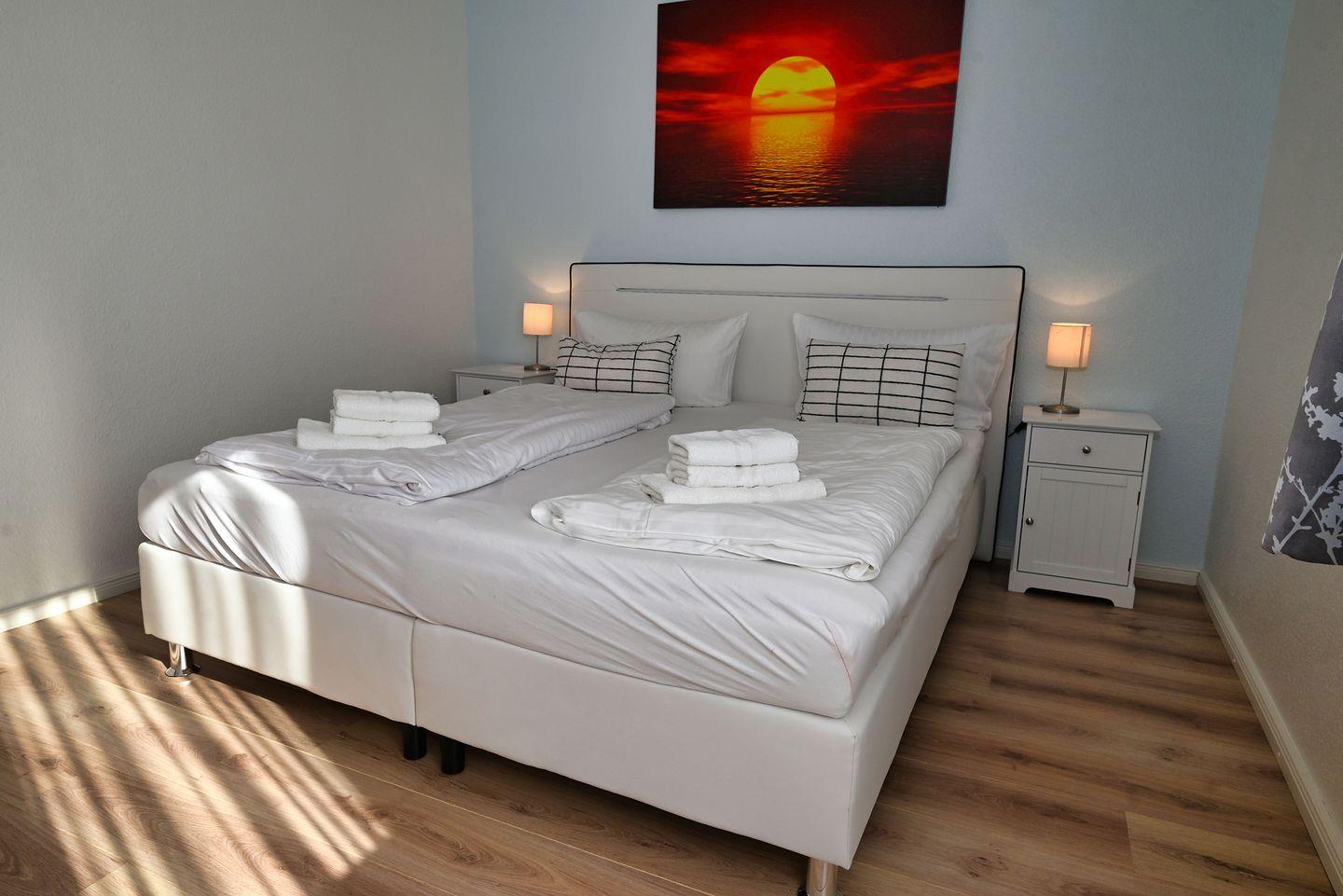 Die komfortable 2-Raum-Wohnung ist in einen Wohn- und Essbereich mit offener Küche, ein Schlafzimmer und ein Bad mit Dusche unterteilt. Auf der bequemen Schlafcouch im Wohnzimmer finden zwei Personen Platz.
