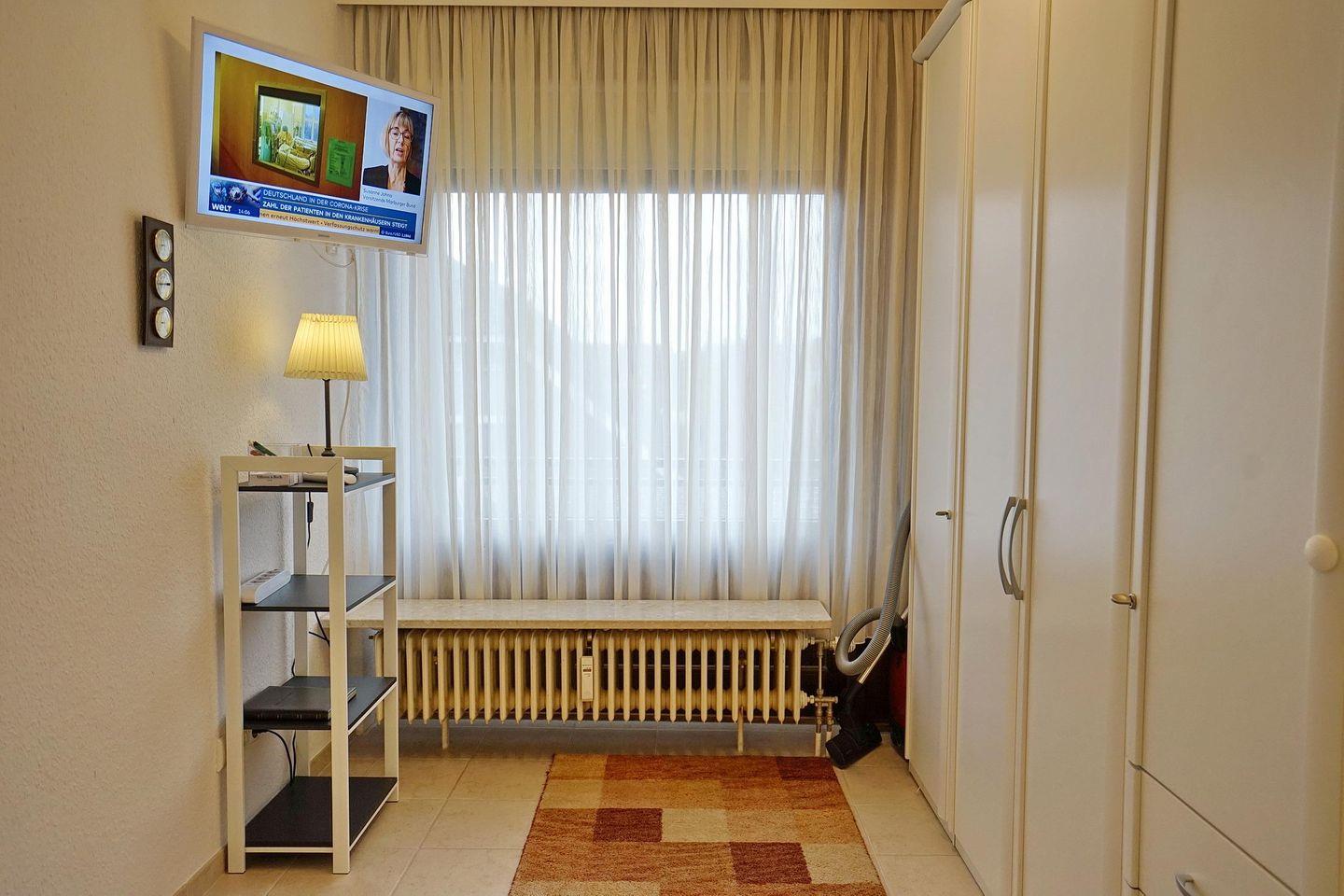 Im Schlafzimmer erwarten Sie 2 Einzelbetten: das extralange Bett 1x 2,20 m und 1x 2,00 m mit elektrisch verstellbarem Lattenrost, Flachbild -TV und Außenrolladen.
