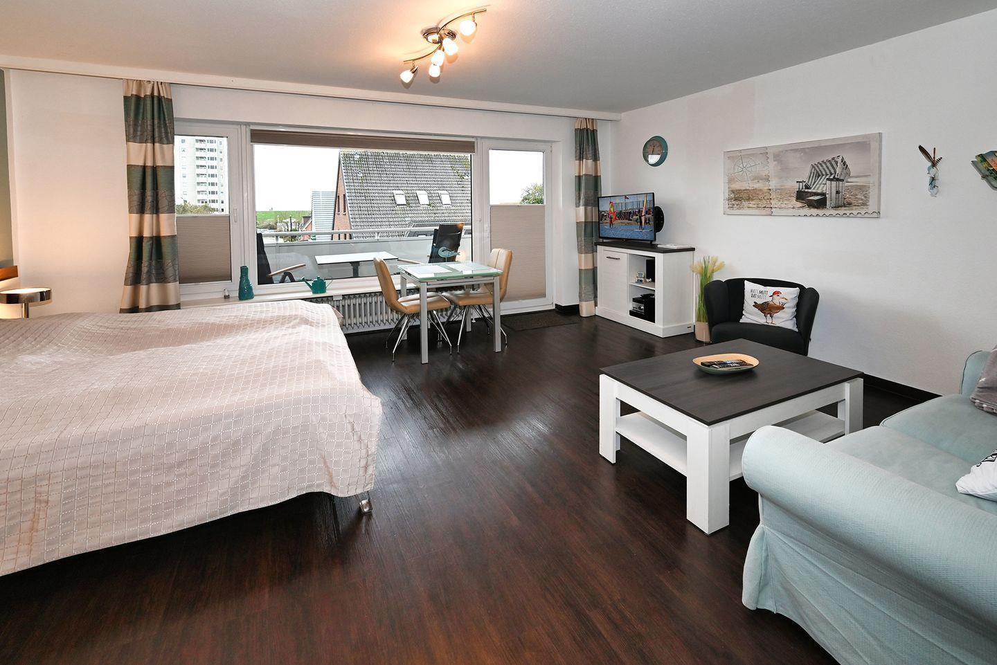 Die 1-Raum-Ferienwohnung mit großem Balkon bietet Ihnen einen Urlaub in stilvoller Atmosphäre.