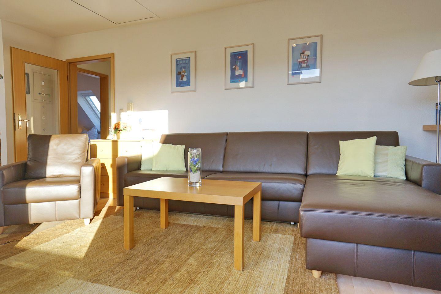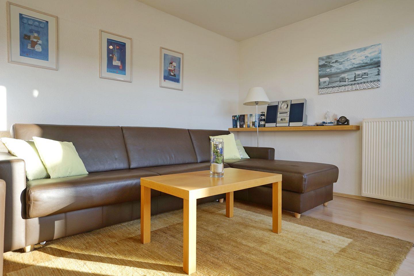 Im Wohnzimmer steht eine hochwertige Schlafcouch für 2 Personen und das Schlafzimmer ist mit einem