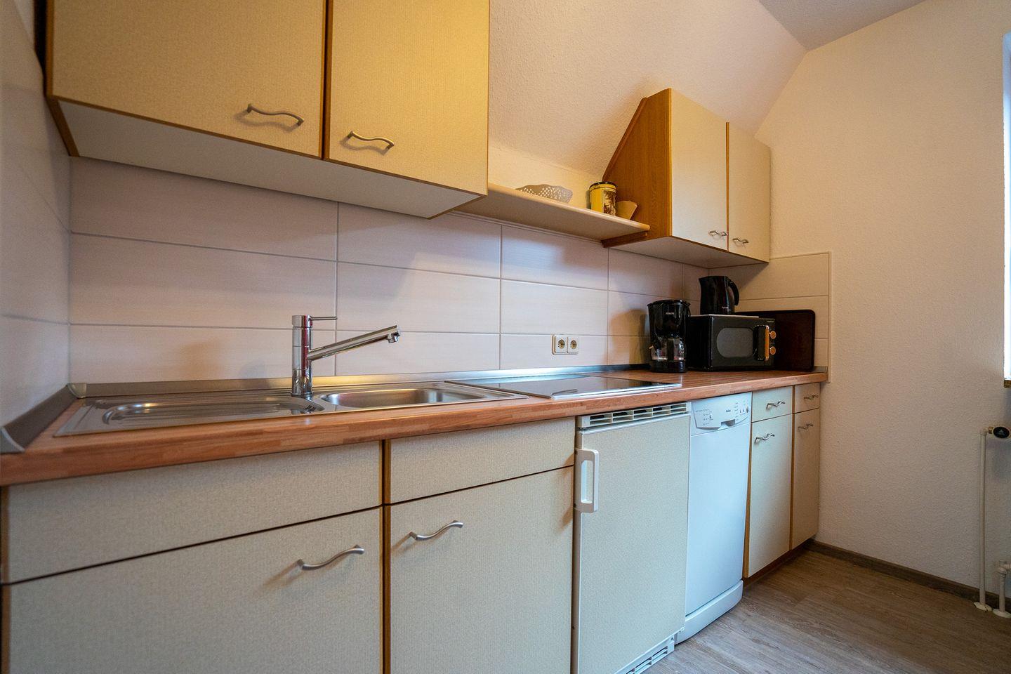Die gemütliche Wohnung bietet Platz für zwei Urlauber. In den beiden großzügig geschnittenen Räumen mit separater Küche finden Sie alles, was ein wunderbarer Urlaub am Meer benötigt. Die Küche ist mit Geschirr und Hausrat für den täglichen Bedarf ausgestattet. Waschmaschine und Trockner können Sie ebenfalls nutzen. Die Wohnung verfügt über Kabel-TV.