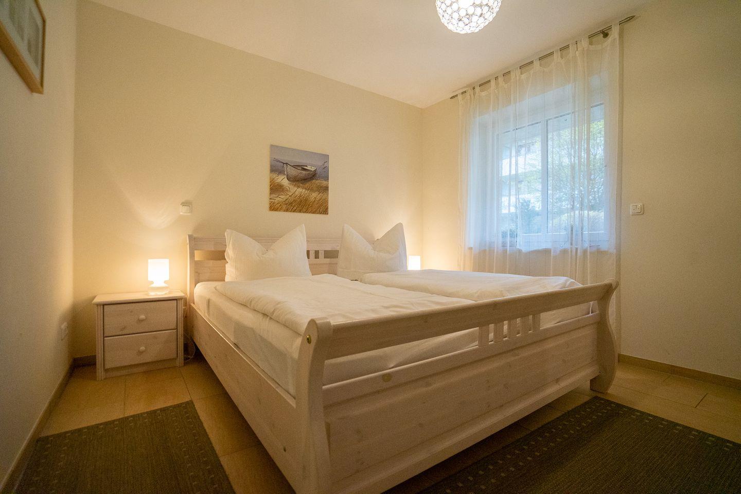 Die 50 Quadratmeter große Unterkunft befindet sich im Erdgeschoss des Hauses und bietet Platz für bis zu drei Urlauber.