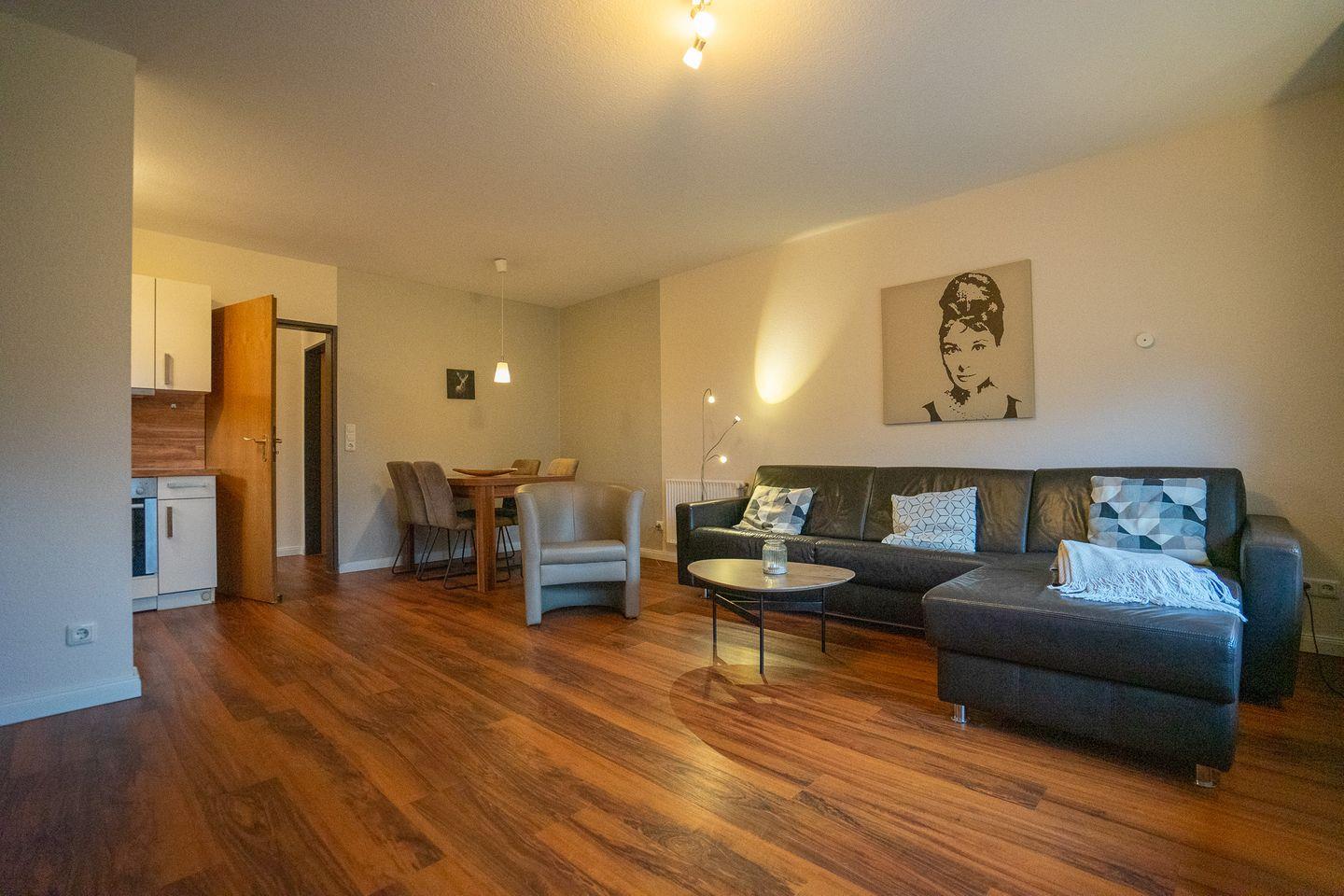 Die Wohnung Nordseetraum 1 befindet sich im EG und verfügt über eine Terrasse mit Terrassenmöbeln, ein Schlafzimmer, eine Küchenzeile, ein Duschbad und einem Wohn-/Schlafraum mit einer hochwertigen Doppelschlafcouch.