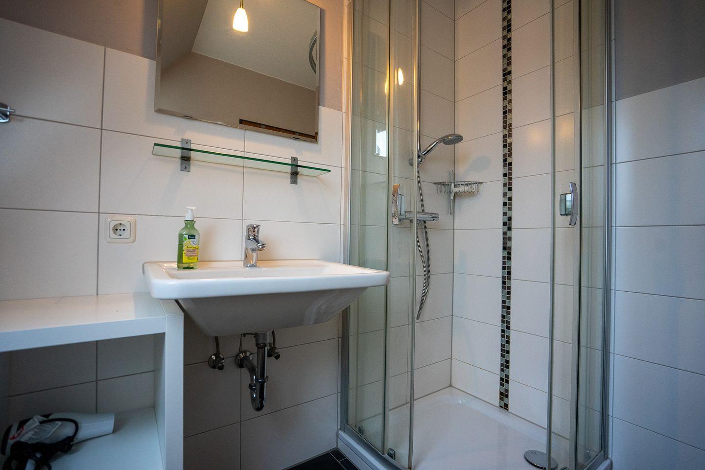 Die Wohnung Nordseetraum 6 befindet sich im OG und verfügt über eine Terrasse mit Terrassenmöbeln, ein Schlafzimmer, eine Küchenzeile, ein Duschbad und einem Wohn-/Schlafraum mit einer hochwertigen Doppelschlafcouch.
